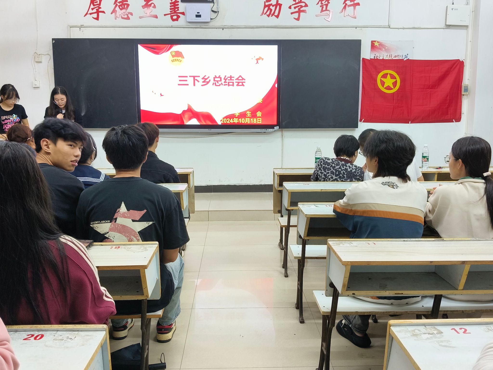 为鼓励老员工积极参与“三下乡”社会实践活动,beats365亚洲版官网于2024年10月18日19:00在英华楼3305教室召开了“三下乡”总结汇报会。参与本次活动的嘉宾有公司党委副书记曹金萍老师,团委书记冷全宝老师,团委副书记胡维琛,员工会主席冯浩,团委书记助理邓诗婷以及部分23、24级的同学们。