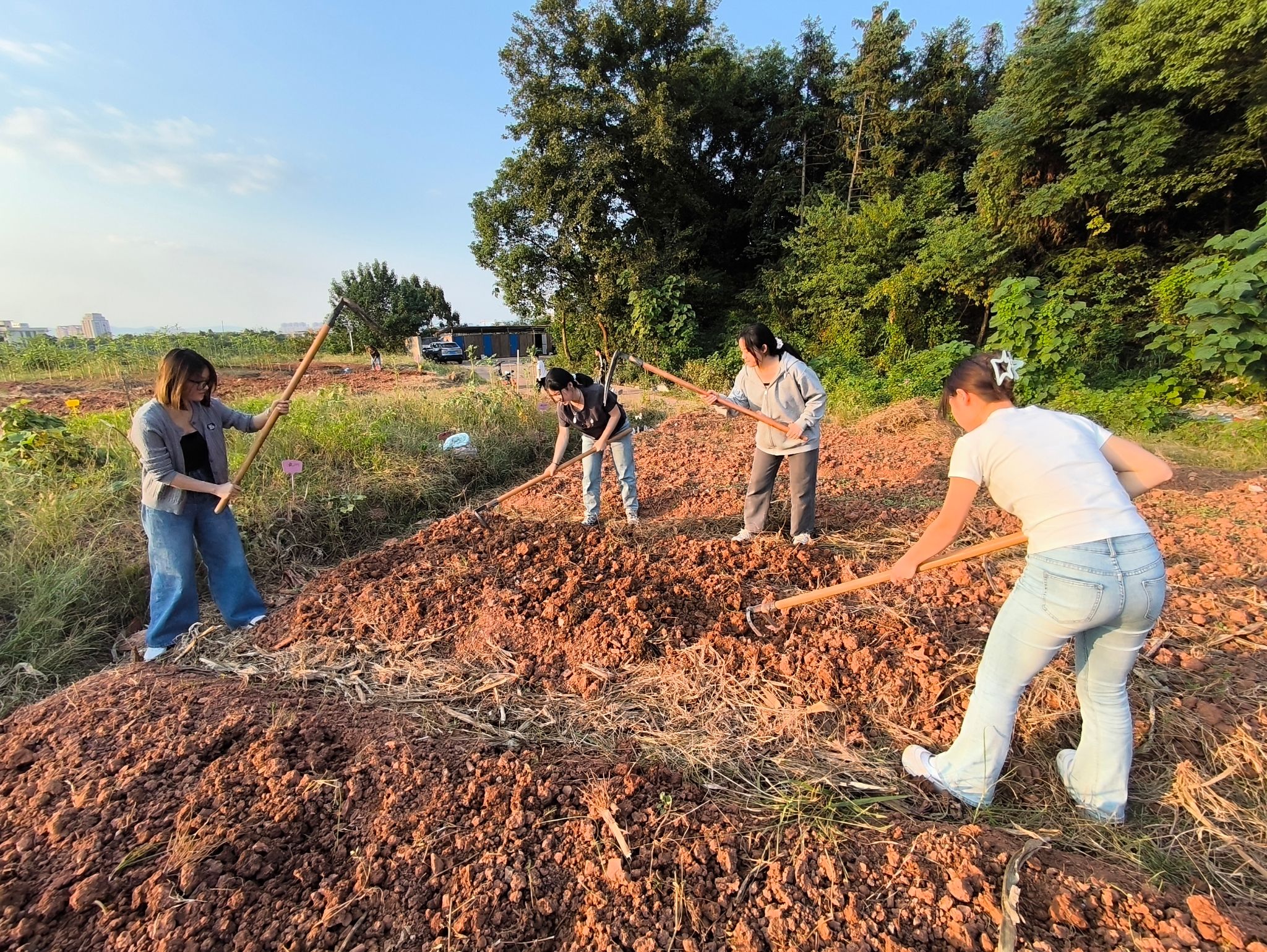 活动伊始,刘佳萍书记亲自为大家展示如何松地。他熟练地操作着工具,一举一动都透露出对劳动的热爱与尊重。刘书记一边示范,一边详细讲解松地的相关技巧,从力度的把握到工具的使用方法,事无巨细。他的讲解生动形象,让在场的每一个人都能快速理解和掌握松地的要领。在传授技巧的同时,刘书记还不忘提醒大家注意安全。他关切地说道:“劳动虽然充满意义,但大家一定要注意保护好自己,安全始终是第一位的。”这温暖的提醒,让大家在积极参与劳动的同时,也感受到了学院领导对大家的关心与爱护。随后,刘书记亲切地询问大家在家中是否有干过家务活。这个问题瞬间拉近了大家的距离,同学们纷纷踊跃回答。有的同学分享了自己在家中帮忙打扫卫生、做饭的经历,有的同学则讲述了自己参与家庭园艺劳动的故事。刘书记认真倾听着每一个同学的回答,时而点头表示赞许,时而微笑给予鼓励。在刘书记的带领下,大家纷纷拿起工具,投入到松地的劳动中。劳动现场热火朝天,大家干劲十足,虽然汗水湿透了衣衫,但脸上都洋溢着灿烂的笑容。大家齐心协力,共同为这片土地注入新的活力。劳动结束后,大家围坐在一起,纷纷分享自己的感受体验。一位同学感慨地说:“通过这次劳动,我深刻体会到了劳动的辛苦与不易,也更加珍惜他人的劳动成果。”另一位同学则表示:“这次劳动让我感受到了团队的力量,大家一起努力,共同完成任务,这种感觉真的很棒。”刘佳萍书记也分享了自己的感受,他强调劳动是一种美德,是我们成长过程中不可或缺的一部分。通过劳动,我们不仅可以锻炼自己的身体,还可以培养自己的责任感和团队合作精神。