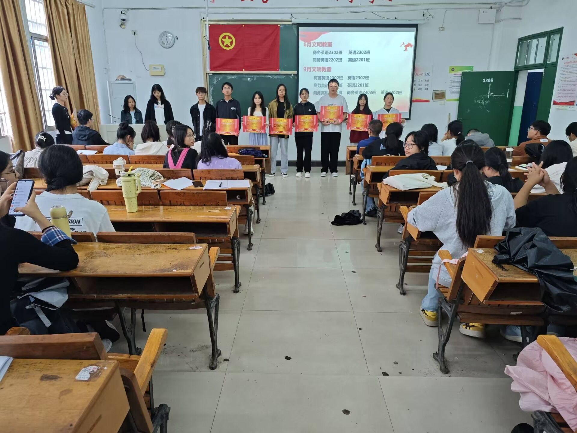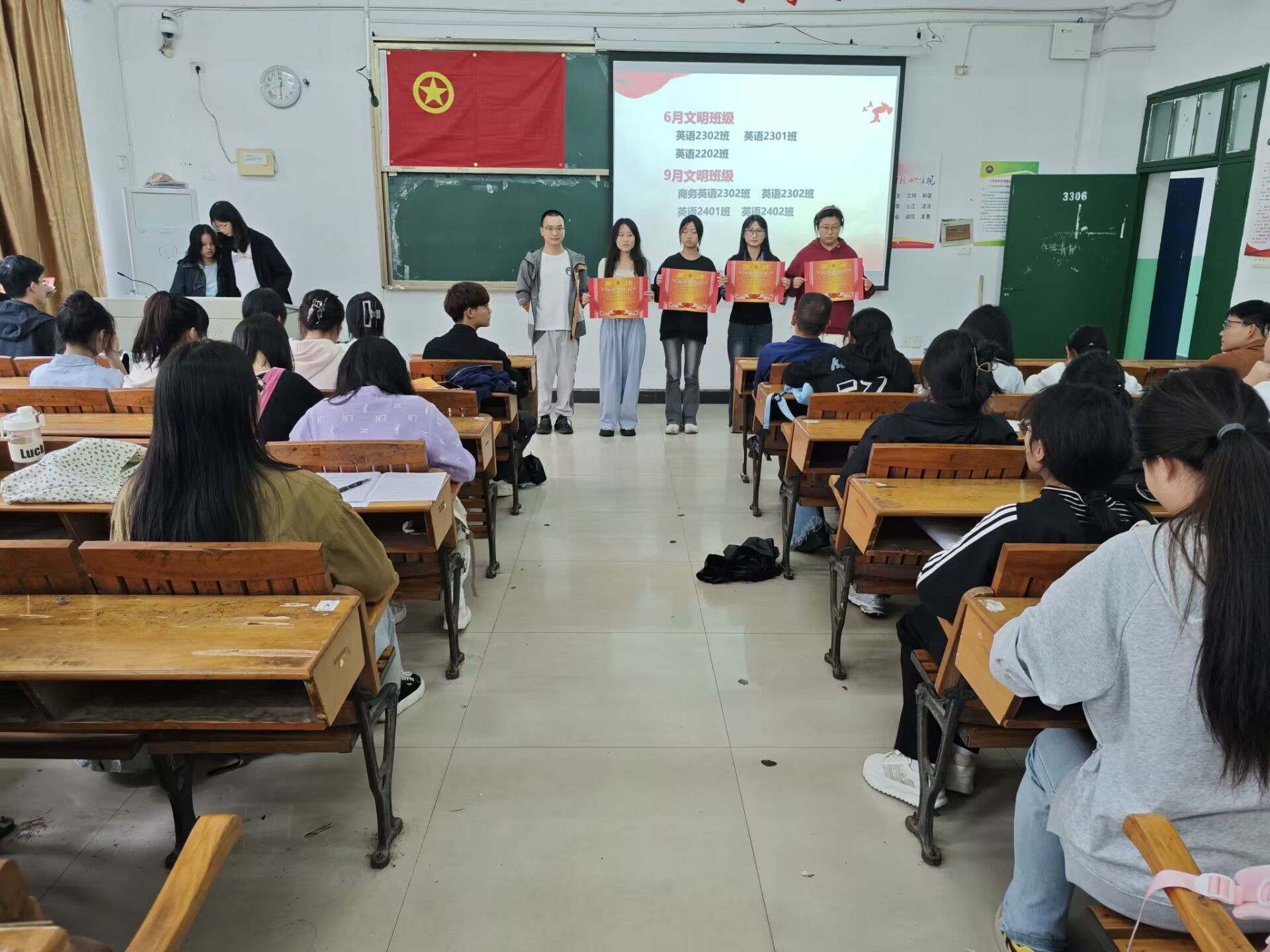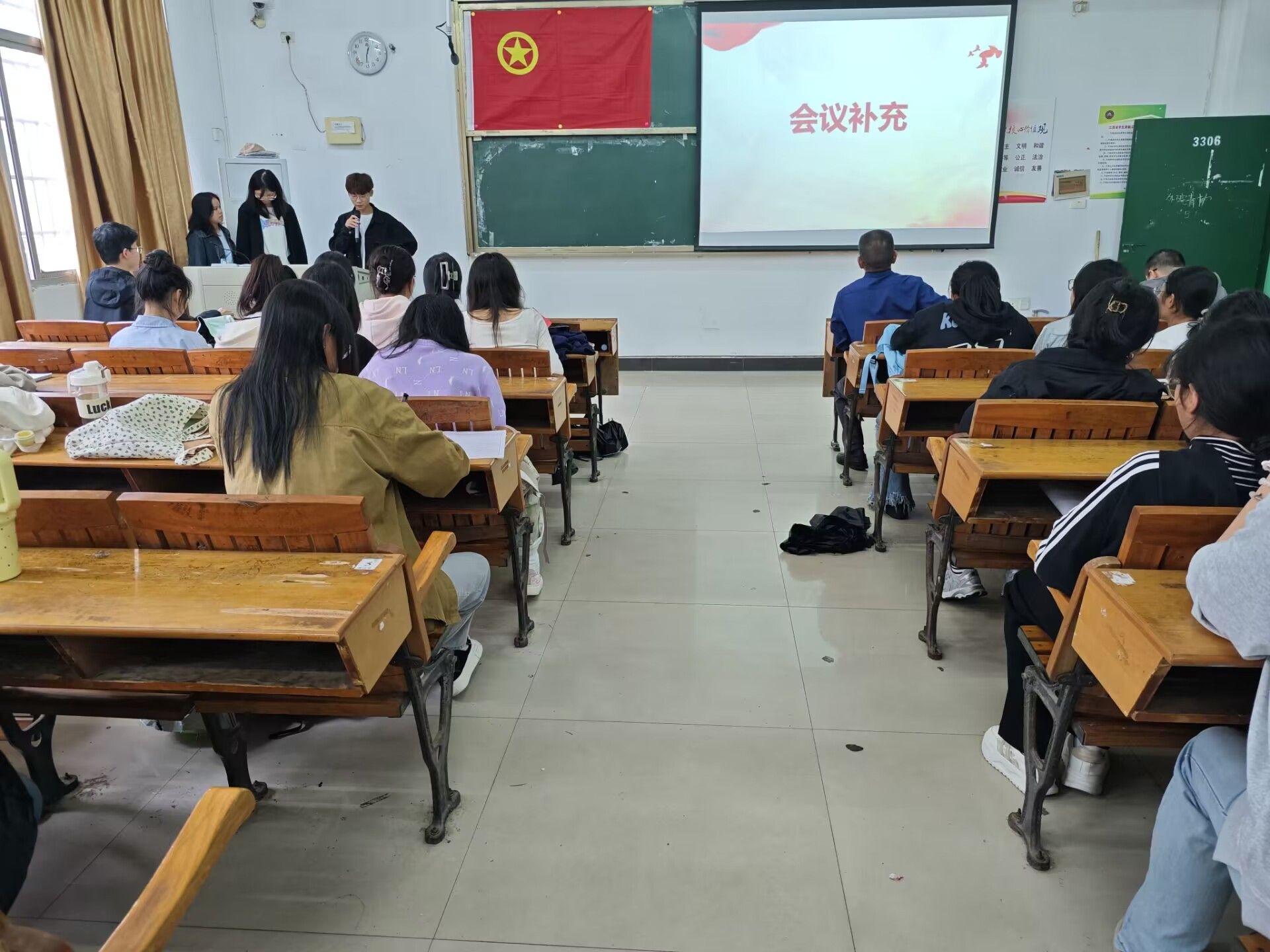 会议初始,办公室成员进行考勤,确保全体学干准时到场。大会第一项,进行理论学习。联系建国七十五周年,通过观看相关视频,学干们更直观、全面的了解了中国的发展历程,随后由员工会主席冯浩带领学干们一起学习建国精神的相关知识,他以此视频号召大家,为实现中华民族伟大复兴的中国梦而努力奋斗!接着,进行文明教室和文明班级颁奖环节,员工会主席冯浩和团委书记冷全宝分别为获奖教室和班级颁奖。其次,进行优秀团支部颁奖环节,党委书记刘佳萍为获奖班级颁奖。随后,员工会主席冯浩对会议进行补充,他希望学干们铭记加入员工会的初衷,在遇见困难和挑战时要勇于站出来承担责任。最后,公司党委书记刘佳萍老师发言,他向获得文明班级和优秀团支部的班级表示祝贺,同时祝愿参与本次运动会的运动员取得佳绩,并动员各位学干积极为本次校运会圆满完成做贡献。