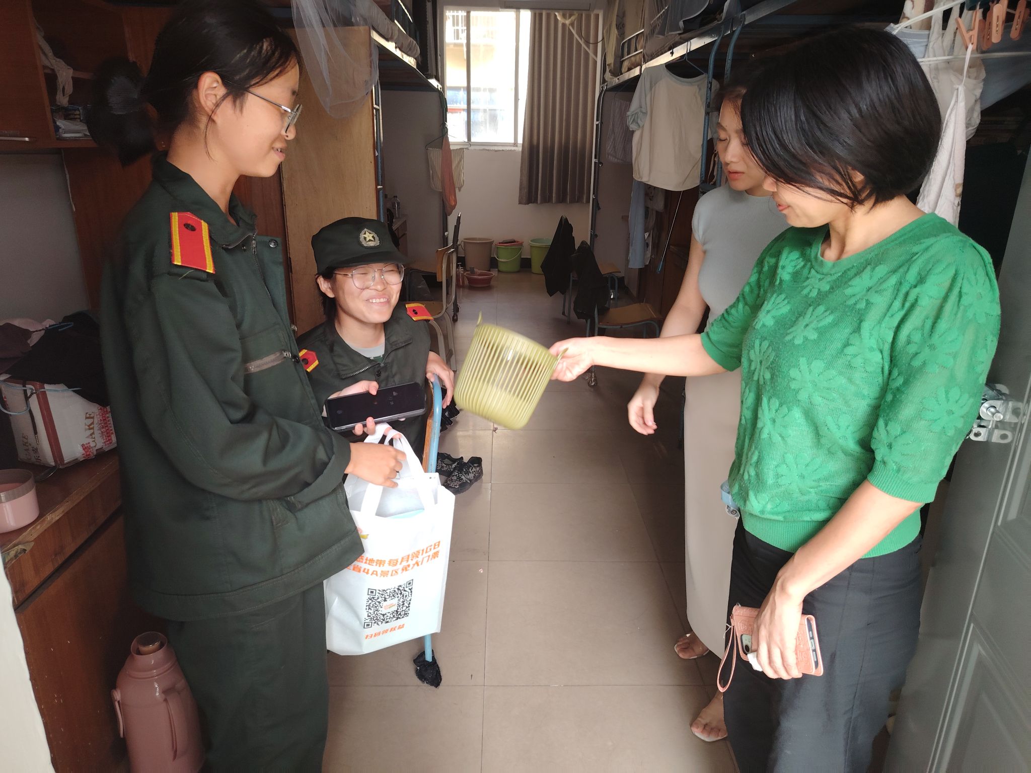 在金风送爽的九月底,新生军训临近尾声之际,为进一步营造安全、温馨、文明、和谐的寝室环境,帮助广大同学养成良好的卫生习惯。公司党委副书记曹金萍、2023级辅导员钟倩于2024年9月23日下寝开展卫生检查工作。
