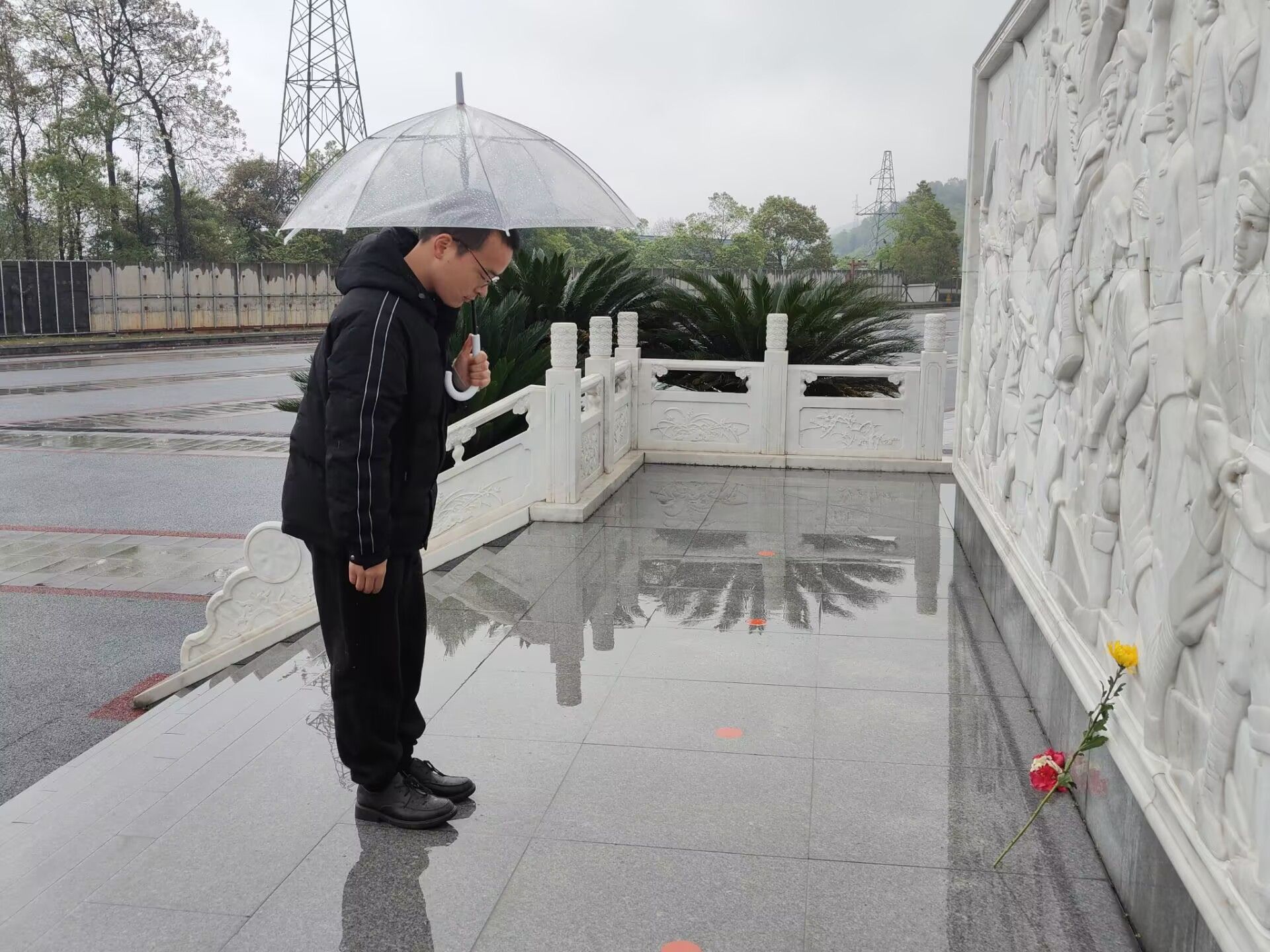上午九时许,师生们抵达陵园。踏入卢德铭烈士纪念馆,仿佛穿越时空,走进了那段波澜壮阔的革命岁月。馆内,讲解员带领师生学习了解卢德铭的英勇事迹,他22岁时担任秋收起义总指挥,在掩护部队突围时壮烈牺牲,毛泽东曾痛惜“还我卢德铭”。陈列的泛黄书信、锈迹斑斑的枪支、战斗场景复原雕塑,生动展现了卢德铭短暂而光辉的一生。参观完毕后,祭奠仪式正式开始,在烈士纪念碑前,全体人员整齐列队,向为革命事业英勇献身的卢德铭烈士默哀一分钟。雨声滴答,仿佛天地同悲,寄托着对先烈的无尽追思。默哀毕,员工们手持鲜花,神情肃穆,依次缓步走向纪念碑。他们轻轻地将鲜花摆放在基座前。紧接着,入党积极分子代表殷丽萍发表演讲。她深情回顾卢德铭“信仰坚定、忠诚担当”的革命精神,结合自身学习经历表示作为新时代青年,我们要以先烈为镜,将个人理想融入国家发展,在实现中华民族伟大复兴的征程中挥洒青春汗水,贡献青春力量。演讲引发强烈共鸣,至此活动圆满结束。