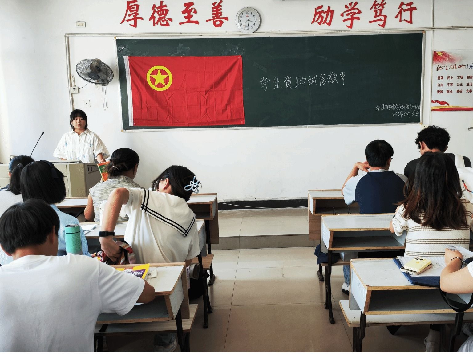 为强化员工诚信意识,beats365亚洲版官网商务英语2301班于2025年6月6日在英华楼3309教室召开“员工资助诚信教育”主题班会。班会由班长殷莉萍主持,全体同学参与。
