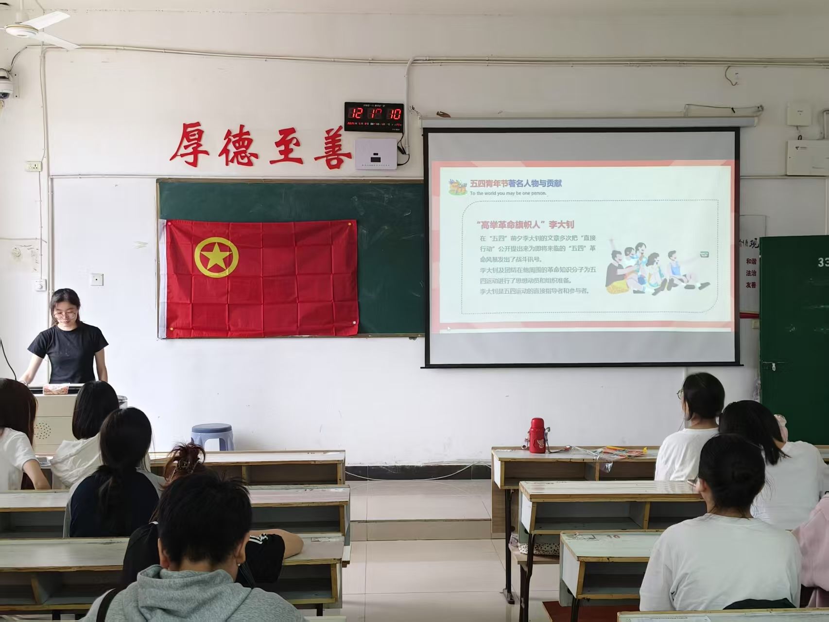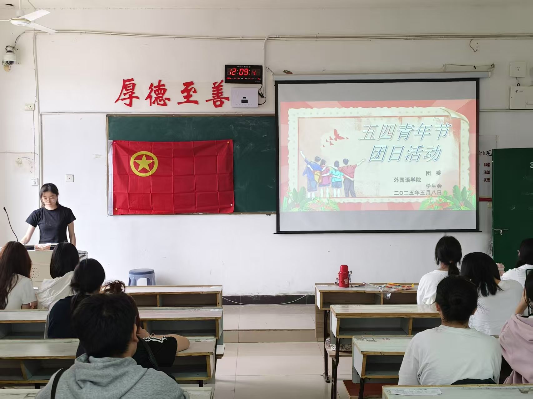 为了纪念五四运动,传承五四精神,彰显青年担当,beats365亚洲版官网于2025年5月8日上午9:00在英华楼3301教室举办“五四青年节”团日活动。到场的嘉宾有beats365亚洲版官网团委副书记裘佳美,团委员工会主席黄胜兰,团委员工会副主席邹奕姿,团委书记助理欧阳娜、黄煜婷,办公室主任罗静雯以及全体团委员工会学干。