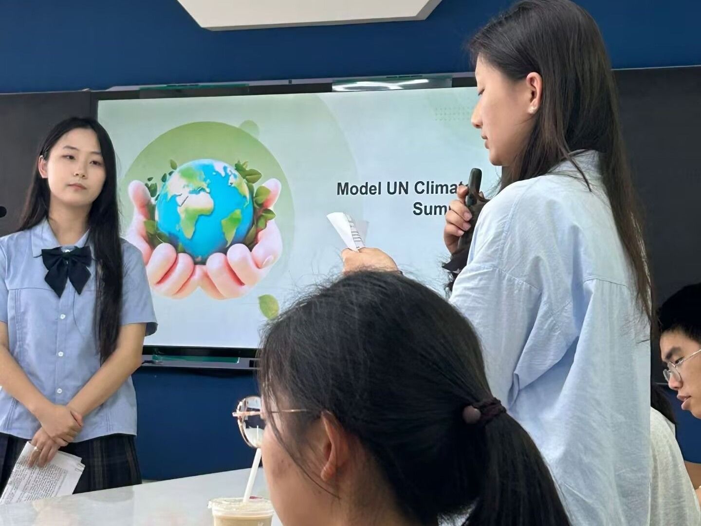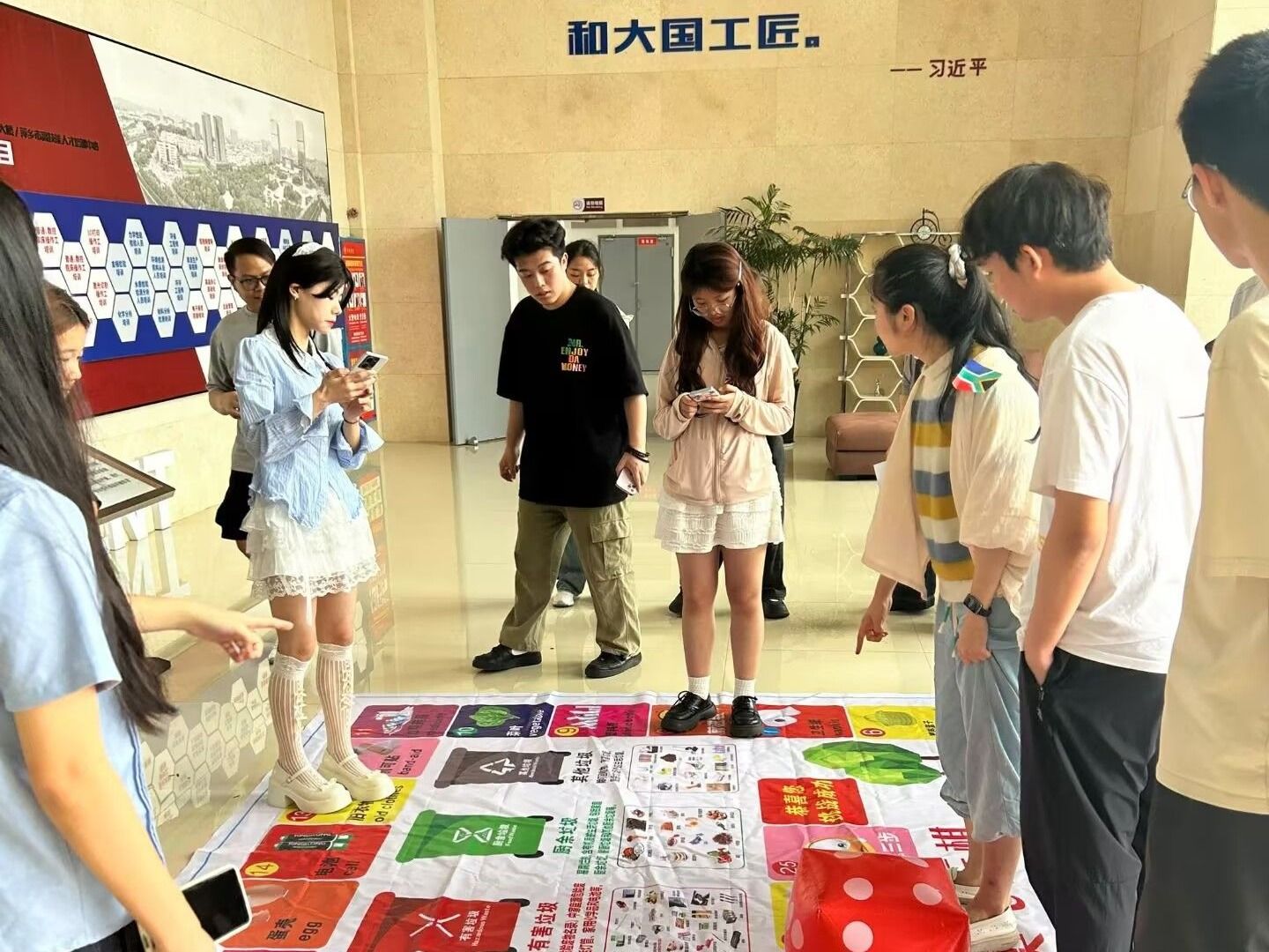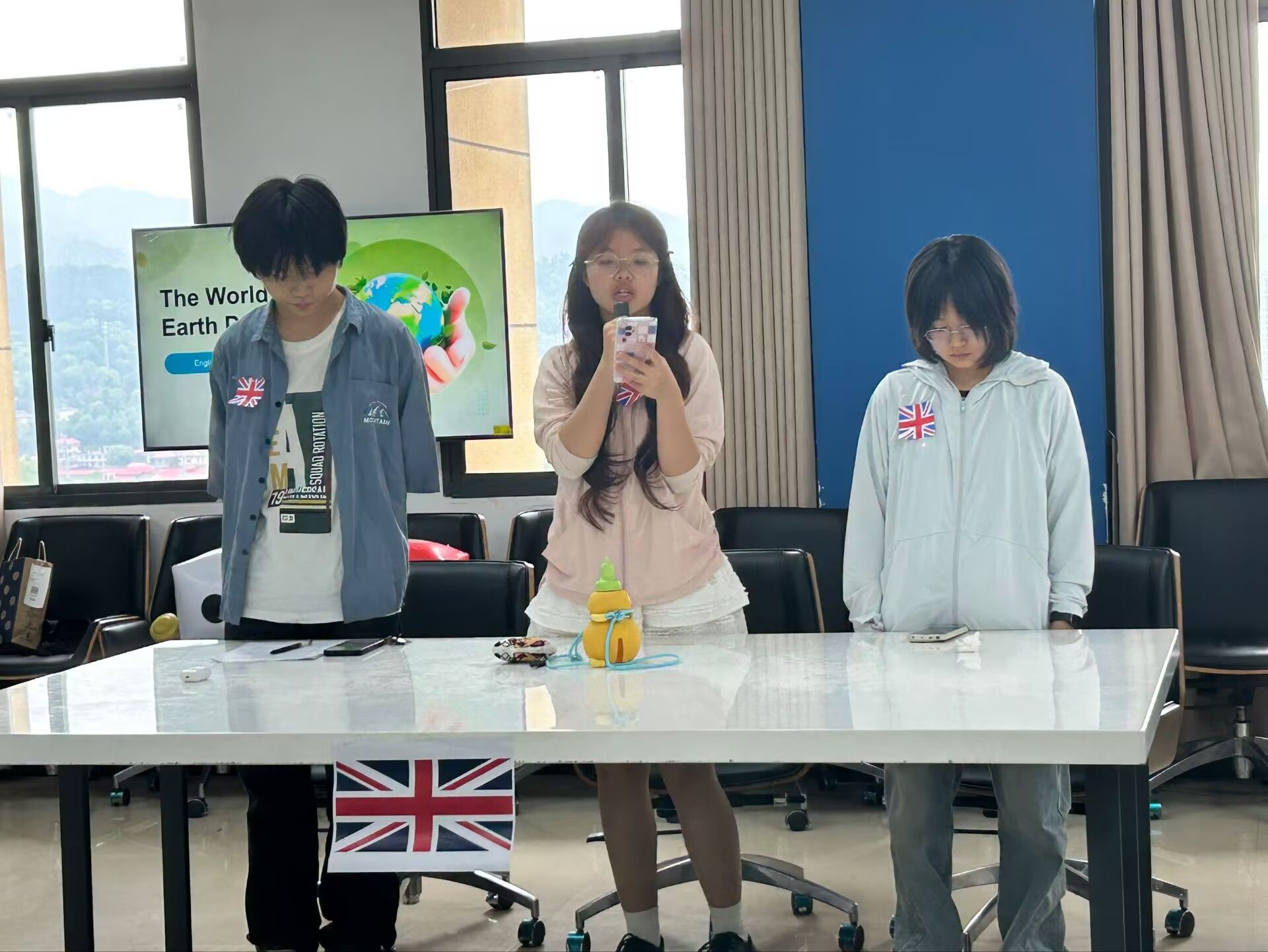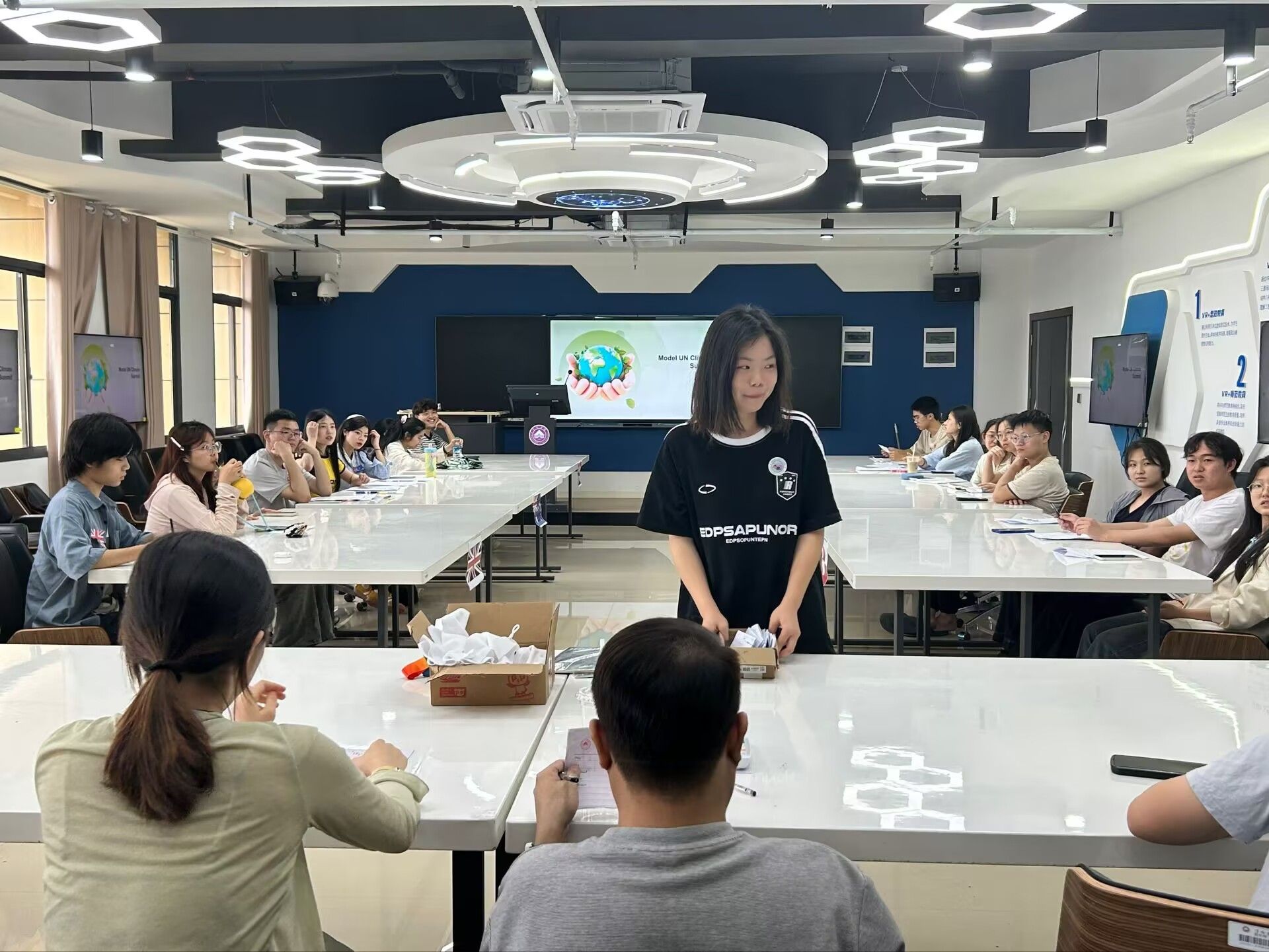 活动在轻松且充满活力的自我介绍环节中拉开帷幕,同学们依次用英语介绍自己的姓名与专业。这一环节不仅让大家结识了许多志同道合的朋友,更为重要的是,帮助同学们勇敢地迈出了用英语自信表达的第一步,为后续的深入交流奠定了良好基础。紧接着,活动迎来高潮——模拟联合国气候峰会。同学们分组协作,分别代表中国、非洲、英国、澳大利亚、格陵兰和美国等国家与地区。在公开讨论中,各小组围绕所代表国家气候问题展开深度剖析,诸如冰川融化、海平面上升、极端气候频发等。在探讨解决方案时,同学们展现出了全面且深入的思考。从个人层面提出践行低碳出行、节约用电用水、参与植树造林等解决方案;从国家政府层面则探讨了推行绿色税收政策、加大可再生能源研发投入等,尽显国际视野与责任担当。模拟峰会结束后,活动进入轻松愉悦的户外活动——垃圾分类飞行棋。在游戏过程中,同学们将英语运用与环保知识学习巧妙融合,在欢声笑语中深刻理解垃圾分类的重要性。活动接近尾声,外教 Joey 老师加入大家的讨论,与大家亲切交流,分享自己对于气候问题和环保行动的看法。最后,Joey 老师根据同学们在各个环节的综合表现进行颁奖,对大家在活动中的努力与优秀表现给予了充分肯定。