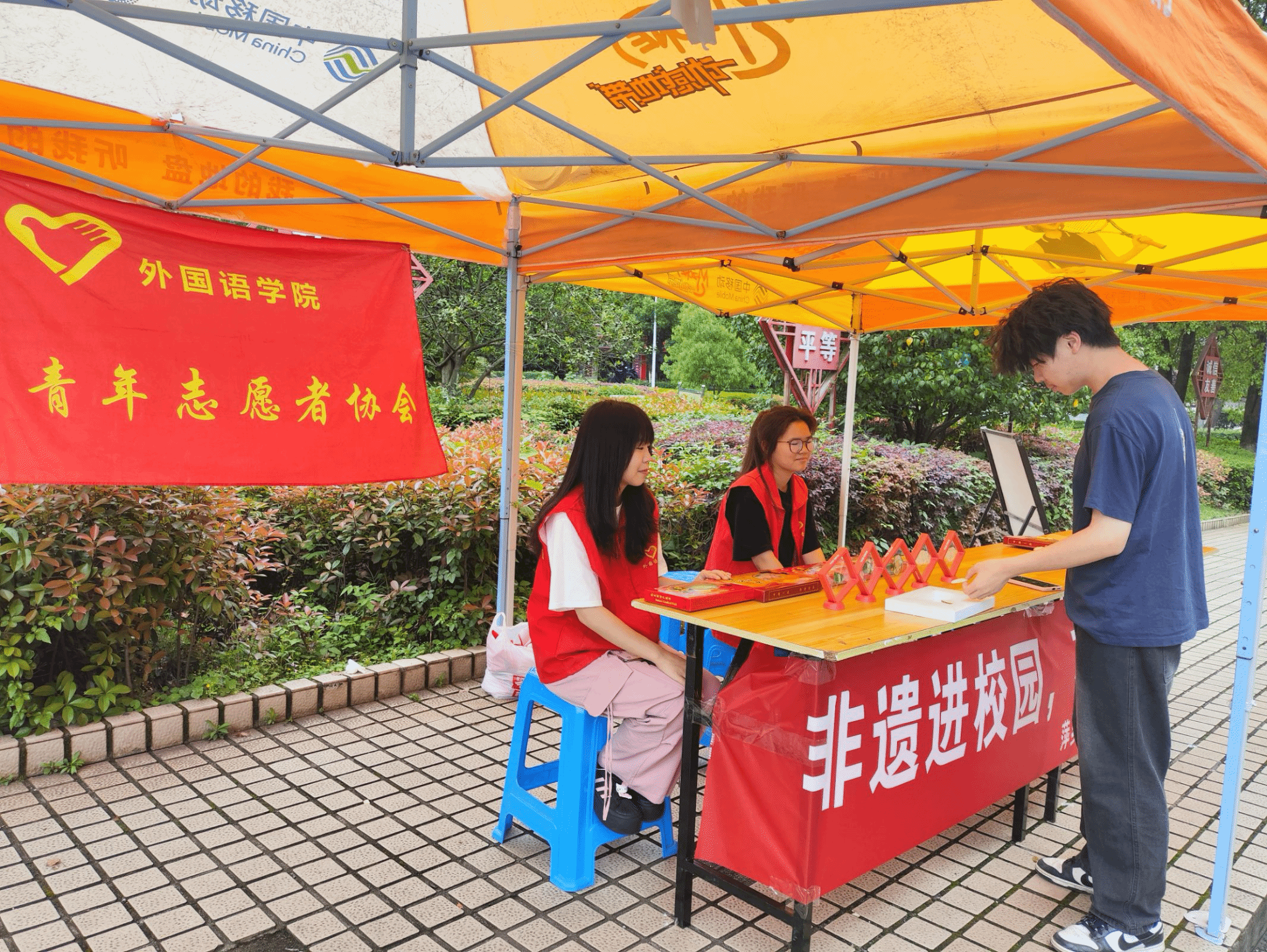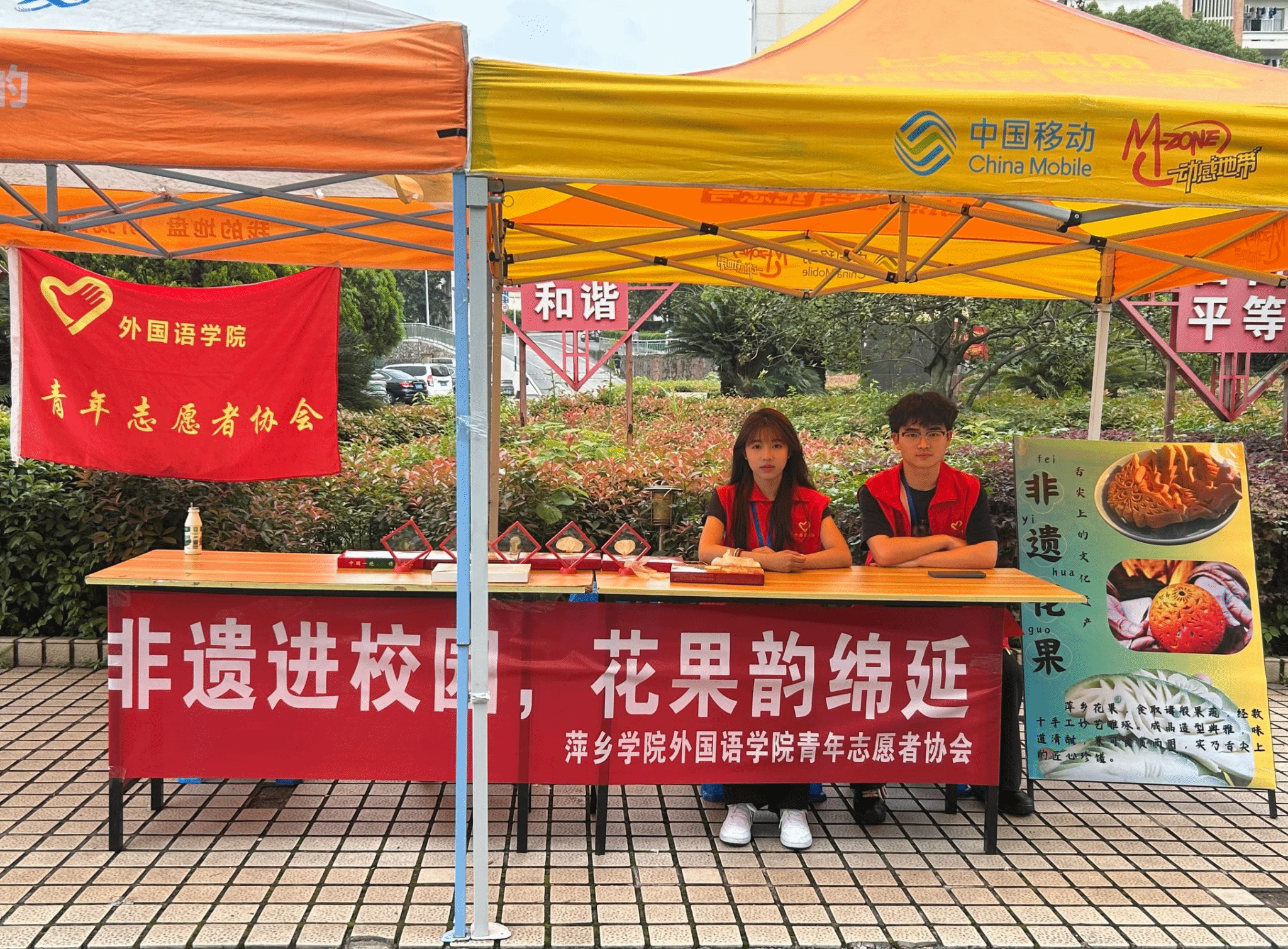 为了助力非遗传承,让广大师生近距离接触、了解萍乡花果这一传统技艺,同时营造校园优秀传统文化氛围,丰富校园文化内涵,beats365亚洲版官网青年志愿者协会于2025年4月20日在校园中心小广场举办了“非遗进校园,花果韵绵延”活动,参与此活动的是beats365亚洲版官网全体同学。