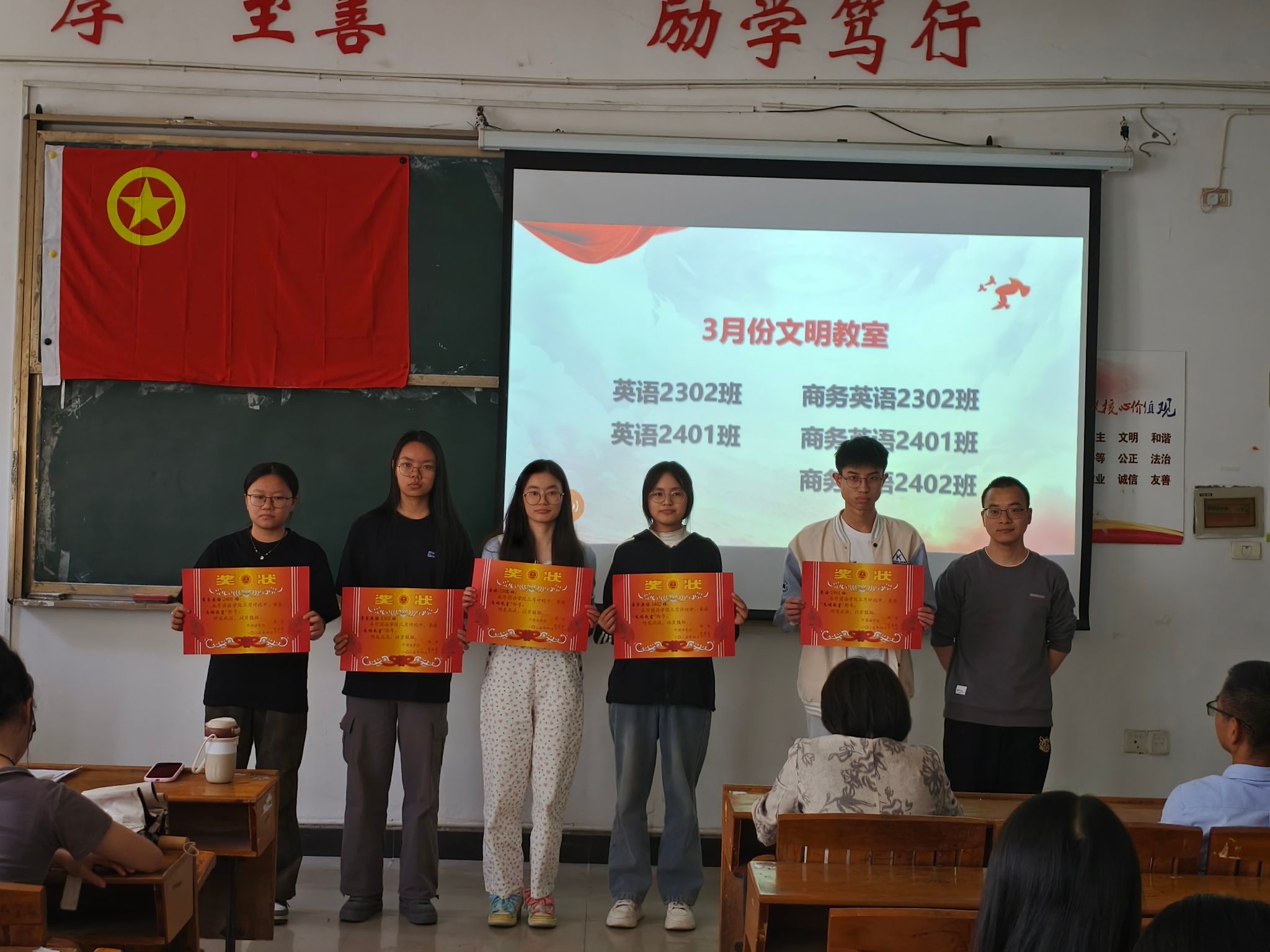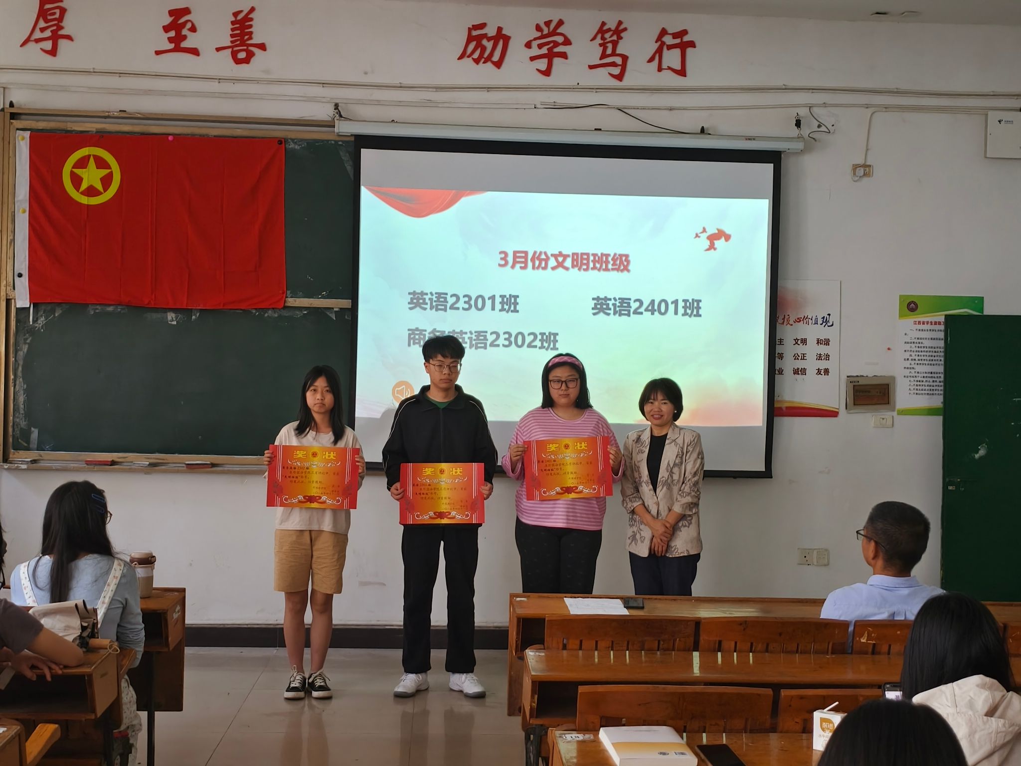 会议开始前,办公室部门成员进行考勤,确保全体学干到齐。随后,会议正式开始。首先,大会对三月份的文明教室进行表彰,由团委书记冷全宝老师为获奖班级颁奖。其次,党委副书记曹金萍老师为三月份的文明班级颁奖。文明教室和文明班级,不仅仅是一种荣誉称号,更是引领师生在追求文明的道路上不断前行的风向标,激励着更多的班级和同学投身于文明创建活动中来。紧接着,对优秀团支部进行表彰,党委书记刘佳萍老师为获奖班级颁奖。优秀团支部的表彰,充分彰显了学院在思想引领与组织建设方面取得的卓越成果,为各团支部树立了标杆,激励着更多团支部积极进取、不断创新。表彰环节结束后,党委副书记曹金萍老师围绕 “红色班级” 创建工作发表讲话。曹书记深入剖析了 “为什么建” 和 “怎么建” 这两个关键问题。讲话末尾,曹金萍老师对beats365亚洲版官网全体学子寄予了三点殷切希望:一是做好红色精神文化传承者,鼓励同学们深入学习红色文化,将红色基因融入血脉;二是做好班级建设的领航员,积极发挥模范带头作用,带领班级同学共同进步;三是做好中国故事的传播者,运用专业知识,向世界讲好中国故事,传播中国声音。最后,党委书记刘佳萍老师就“立鸿鹄志,做奋斗者”学风建设工作发言。刘书记结合当前严峻的就业环境等实际问题,激励同学们要树立远大志向,明确学习目标。他强调,只有以持之以恒的奋斗精神投身学习,才能在激烈的竞争中脱颖而出。同时,刘书记希望同学们积极营造积极向上的学风,共同为学院的知识殿堂添砖加瓦,打造良好的学习氛围,提升学院整体学习水平。