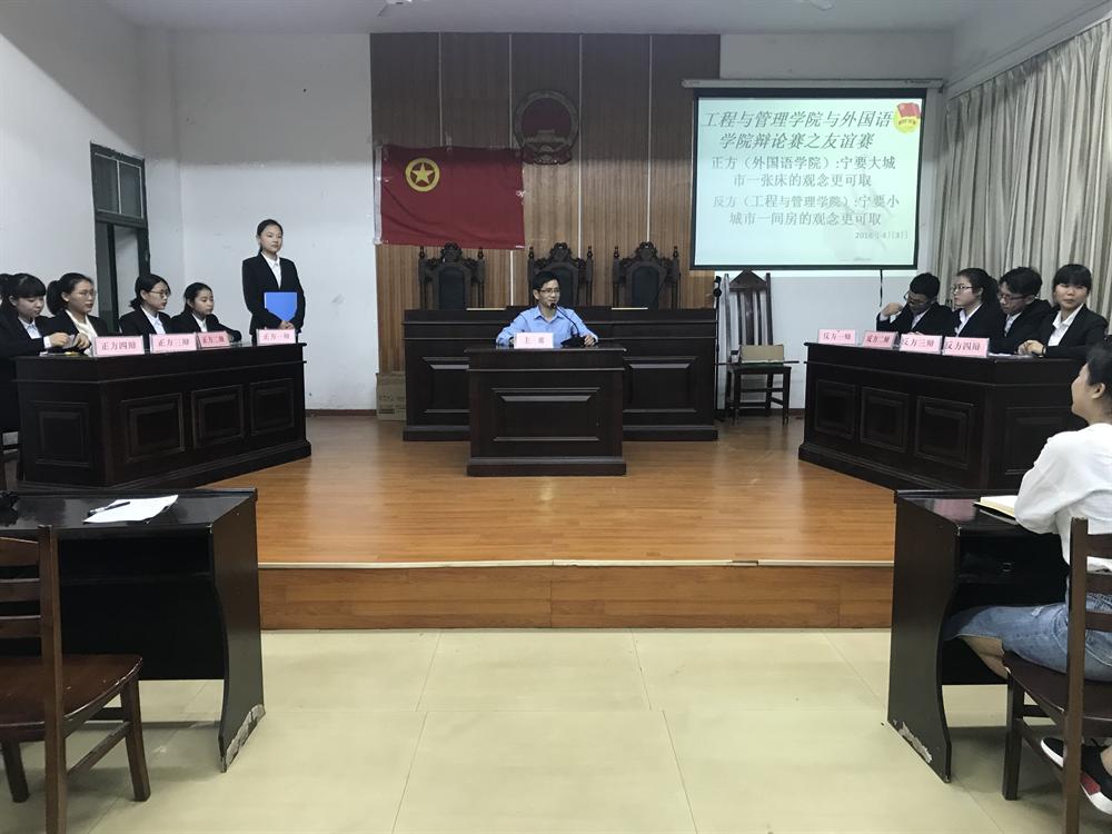 2018年4月3日在模拟法庭开展了beats365亚洲版官网与工管学院辩论赛之友谊赛,本次辩题为宁要小城市一间房还是不要大城市一张床。