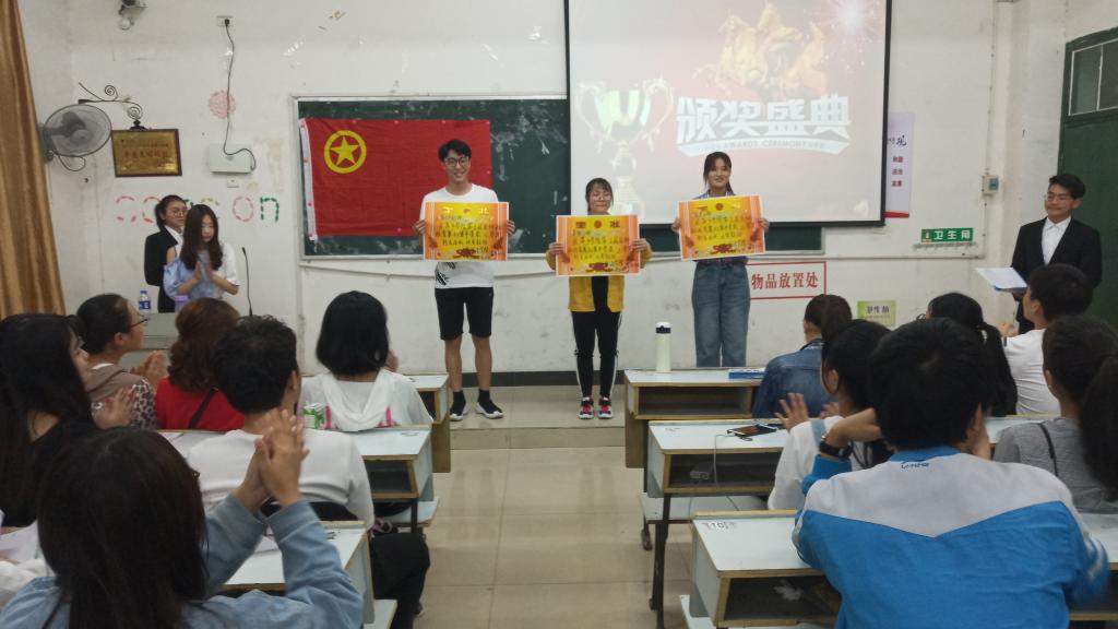 本次活动由九个代表队参加,活动一共有六个环节,一开始为必答题,各代表队轮流回答问题。第二环节便是抢答题,本次活动的抢答方式别具一格,分为三种,第一种是每个题目都附有一个电话号码,代表队同时拨打电话,先打进者即可答题,第二种各代表队派人抽签抽到“答”字者即可答题,第三种是先抄写古诗词后打电话,最快者即可获得答题机会。在此环节中,各代表队队员相互合作,只为争夺答题机会。两轮过后,各代表队比分不相上下,下面的第三环节是观众互动环节,此环节充分展现了观众的不凡实力。第四环节和第五环节是本场比赛的最高潮,大家使出浑身解数拉开比分,为班级争夺荣誉。最后一个环节,除了同学外,刘佳萍书记也参与其中,和大家一起互动。活动最后,由刘佳萍书记对本次活动进行点评,活动受到了书记高度的认可,并表示支持多举办此类活动,拓展大家的知识面。