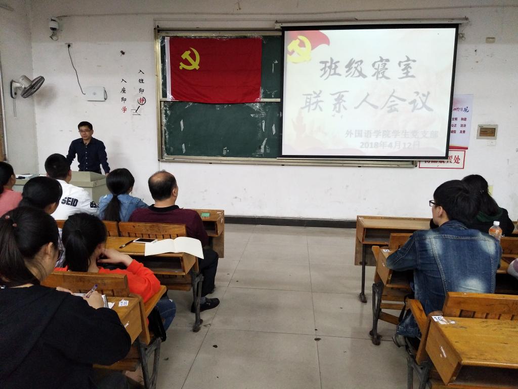 了更好的落实beats365亚洲版官网教室、寝室管理的新制度,2018年4月12日中午12时40分,beats365亚洲版官网员工党支部于英华楼3306教室召开班级、寝室联系人会议。参加本次会议的有公司党总支书记黄柏萍、党总支副书记刘佳萍,员工党支部支委以及所有班级、寝室联系人。