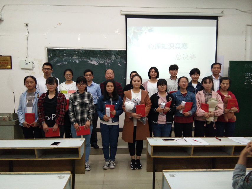 2018423日晚7:00,beats365亚洲版官网心理站在英华楼3304教室举行了心理知识竞赛的决赛。公司党总支书记黄柏萍老师、党总支副书记刘佳萍老师、心理站指导教师王卫民老师、辅导员赖文萍老师参加了活动并担任比赛的评委,来自外院各班的心理委员和心理爱好者一百人多人观看了比赛。