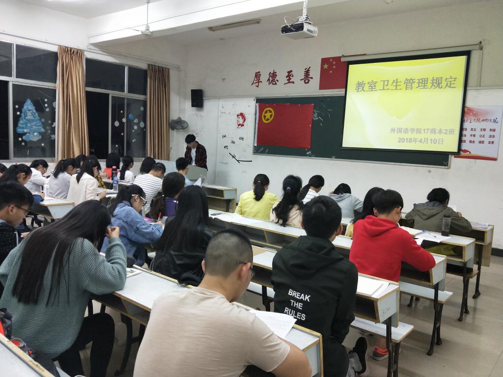 4月10日,beats365亚洲版官网17商本二班在英华楼3508开展了教室管理规定的主题班会。