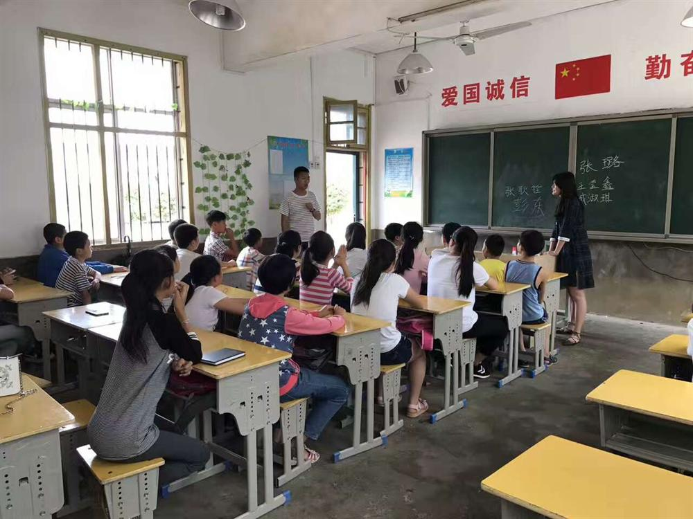 在经过午休过后,实践服务队开始教孩子们进行简单的英语对话以及学唱歌曲《The Happy Song》。孩子们在欢快的歌曲中学到了知识也同样感受到了来自实践服务队的温暖和快乐。