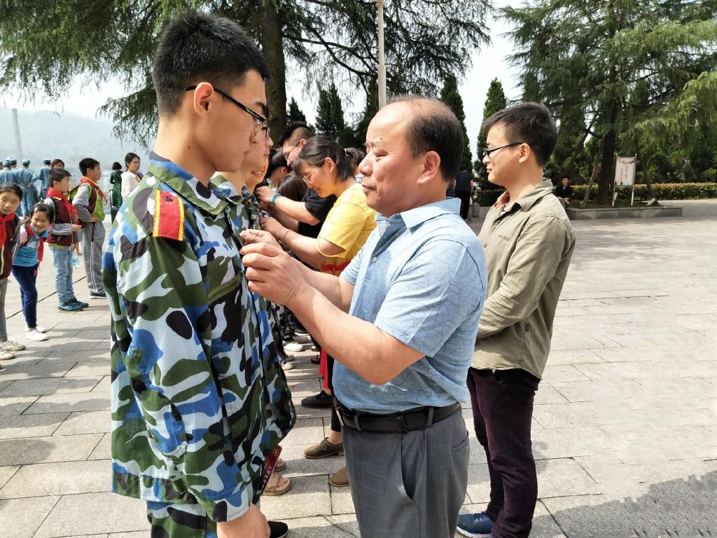 活动第三项:由共青团员为少先队员佩戴红领巾,共产党员为共青团员佩戴团徽,少先队员为共产党员和预备党员佩戴党徽。这样的互动像一个轮回,也意味着传承;红军精神、共产主义理想、中国特色社会主义理论需要所有当代青年去继承和发扬,实现中华民族的伟大复兴也需要大家一起努力,光创辉煌。