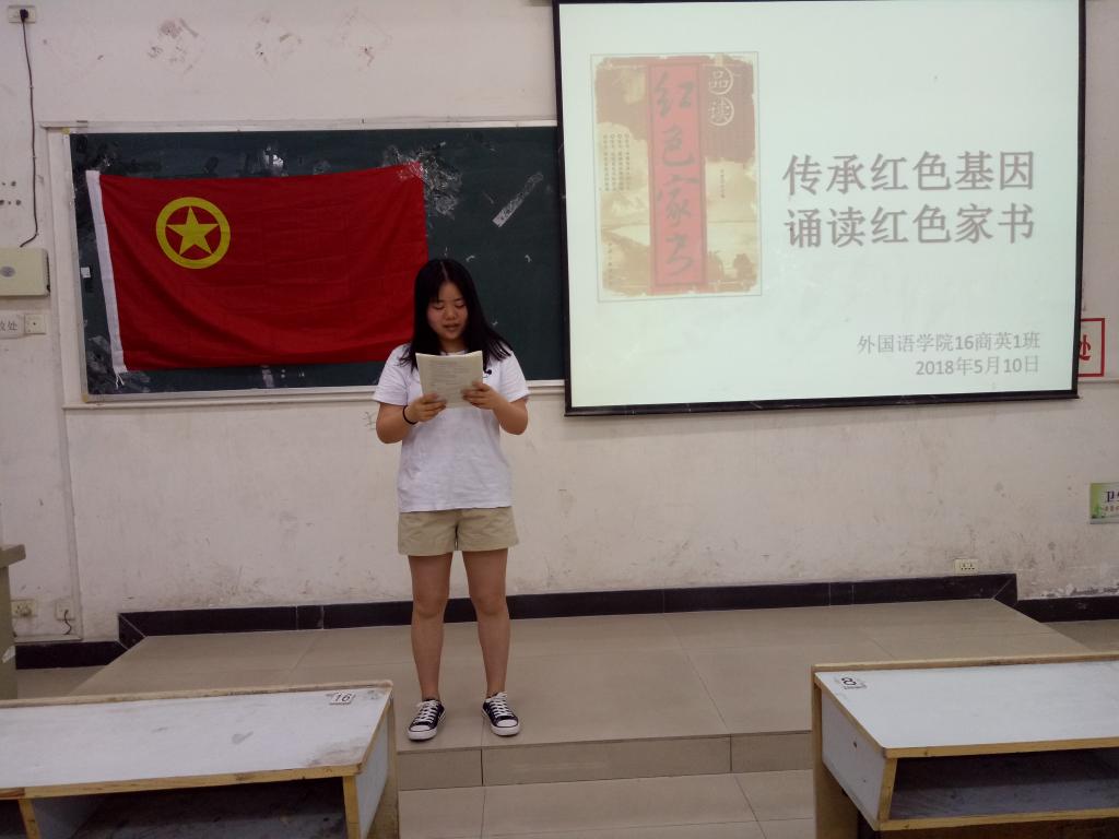 beats365亚洲版官网16商英1班在2018年5月10日于3305教室开展“传承红色基因 诵读红色家书”主题思想活动,本次活动由7位员工代表诵读7封红色家书,班主任赖文萍出席本次活动。