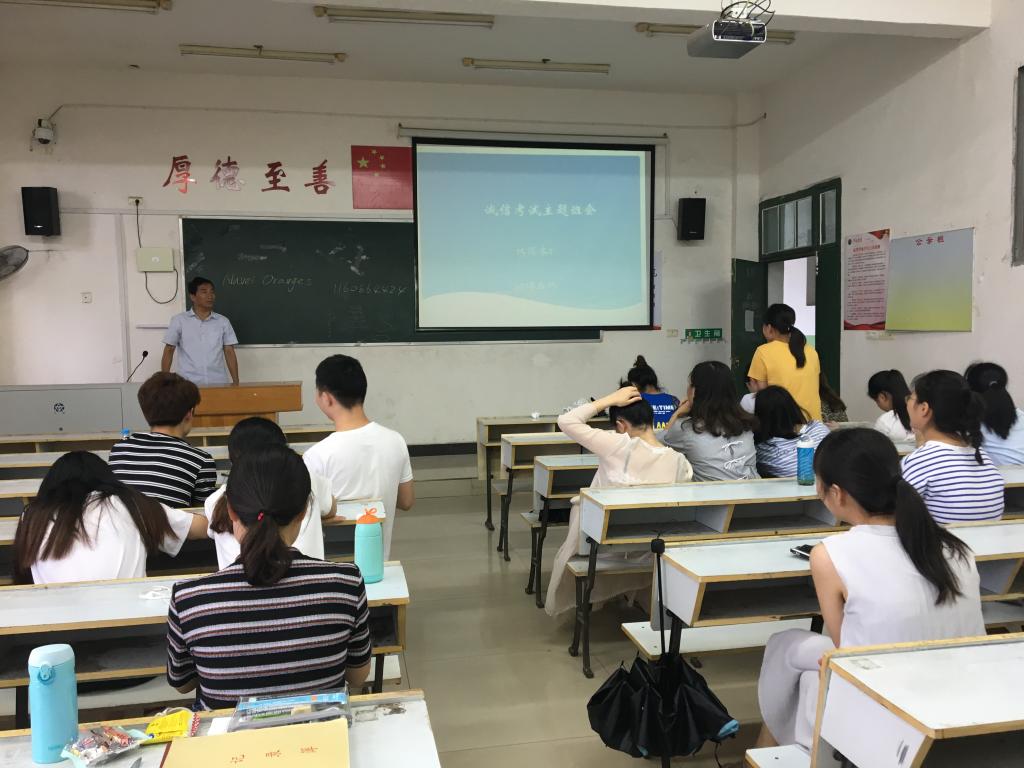 随着期末考试将近,为进一步完善学院学风建设。6月21日中午12点整,15商本1班在英华楼3501教室召开了以“诚信考试”为主题的主题班会。此次班会由我班班长刘倩同学召开,辅导员王卫民老师出席了此次班会。