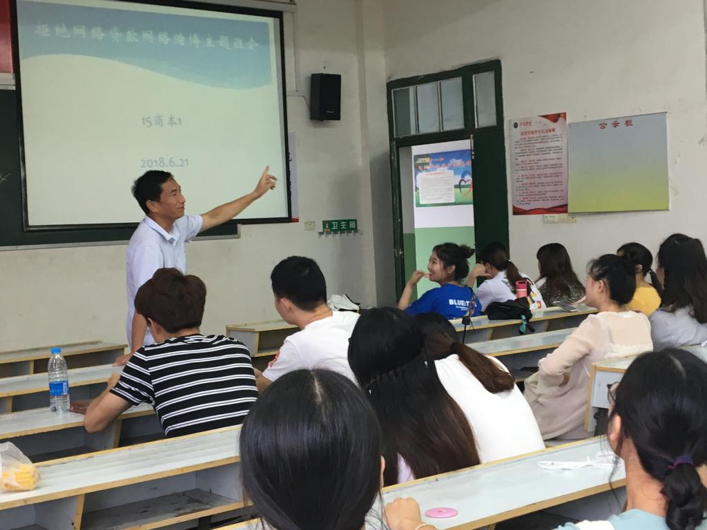 为进一步让员工了解校园网贷的危害,增强员工网络安全防范意识,6月21日中午12点30分,15商本一班在英华楼3501教室召开了以“拒绝玩网络贷款、网络赌博”为主题的主题班会。此次班会由我班班长刘倩同学召开,辅导员王卫民老师出席了此次班会。