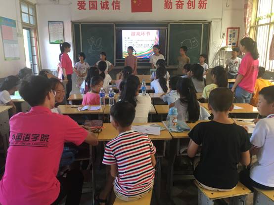 绘画课主要学习的是简笔画,同学们学习的激情性非常高,学习了绘画技巧之后,队员余作敏还带领班级同学玩游戏,促进同学们之间的感情。趣味学习课主要是运用游戏的方式来记忆单词和学习其他知识,同学们非常活跃,在课上也学到了很多。经过简单的午休之后,下午的课程也开始了。授课的队员用自己的热情和专业知识带领班级同学进行学习,课堂气氛非常活跃,同学们学习的效率也很高。