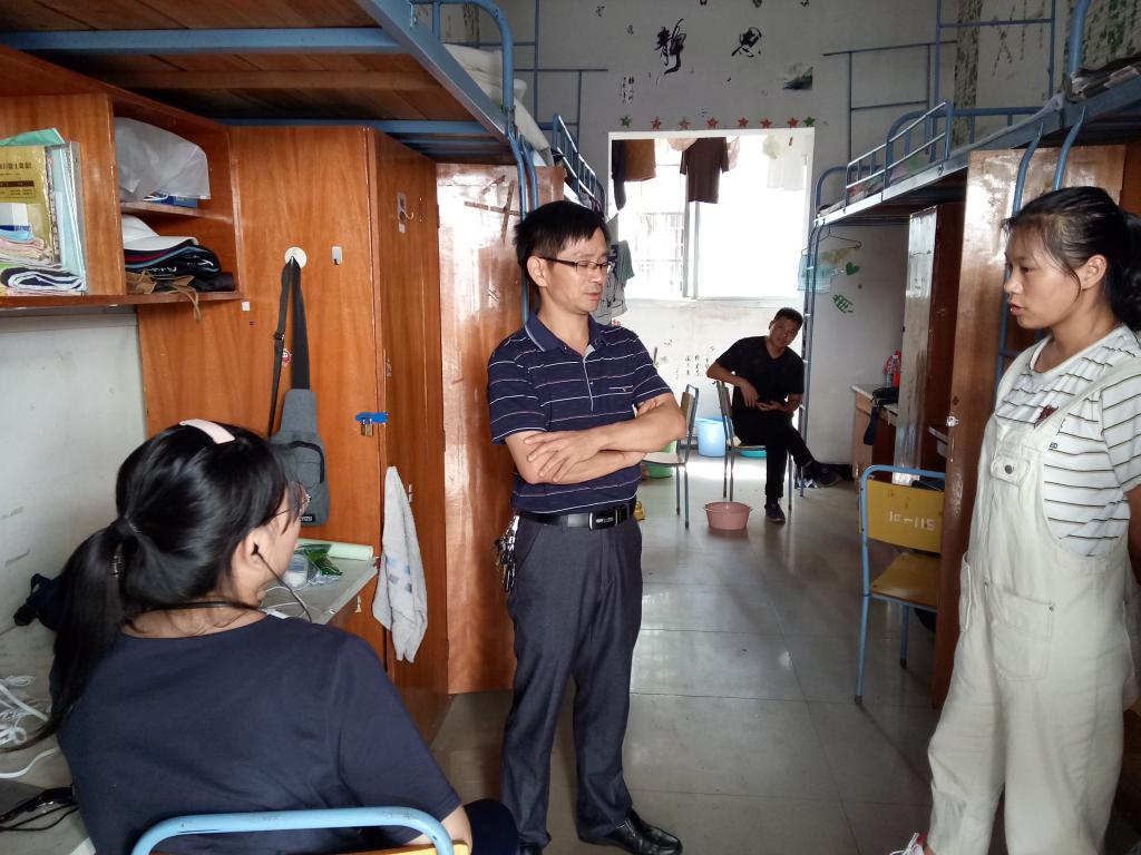 来到新生宿舍之后,刘书记首先视察了新生住宿环境及宿舍各种设备,确保新生住的安心,住的舒服,使新生尽快适应大学校园的住宿生活,开始他们新的人生旅程。各位新生来自四面八方,不论习俗还是生活习惯总存在一些偏差,初到校园的他们,内心还是有些惶恐。各级领导为了让新生感受到学院对他们的关心,亲自前来慰问。视察了环境之后,领导们开始和新生唠家常,面带平和的微笑,此刻的他们不像是领导,更像是亲切的家人。他们与新生的交流也涉及各个方面,首先了解他们是否满意住宿环境,接着又询问了新生的个人情况,同学们也积极地回应问题,面对领导们的关心,对于他们来说除了惊喜,更多的是感到温暖。结束视察后,新生们纷纷热情地与领导们挥别,感谢领导的关心。