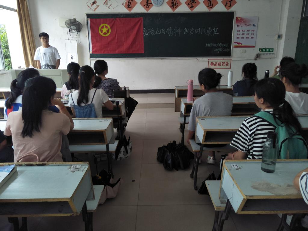 首先,学习委员上台讲话,阐述五四运动的历史,一百年前五四时期,广大爱国青年和知识分子高举民主与科学旗帜,为民族独立、国家完整和人民解放,形成了爱国、进步、民主、科学的伟大五四精神。其次,学习委员积极引导各位同学树立崇高理想,坚定理想信念,主动学习新时代新思想。最后,学习委员就如何“弘扬五四精神,担当时代重任”提出了自己的看法,并强调作为新时代青年员工,要有奉献意识,更要为实现中华民族伟大复兴梦奋斗,勇担时代重任。