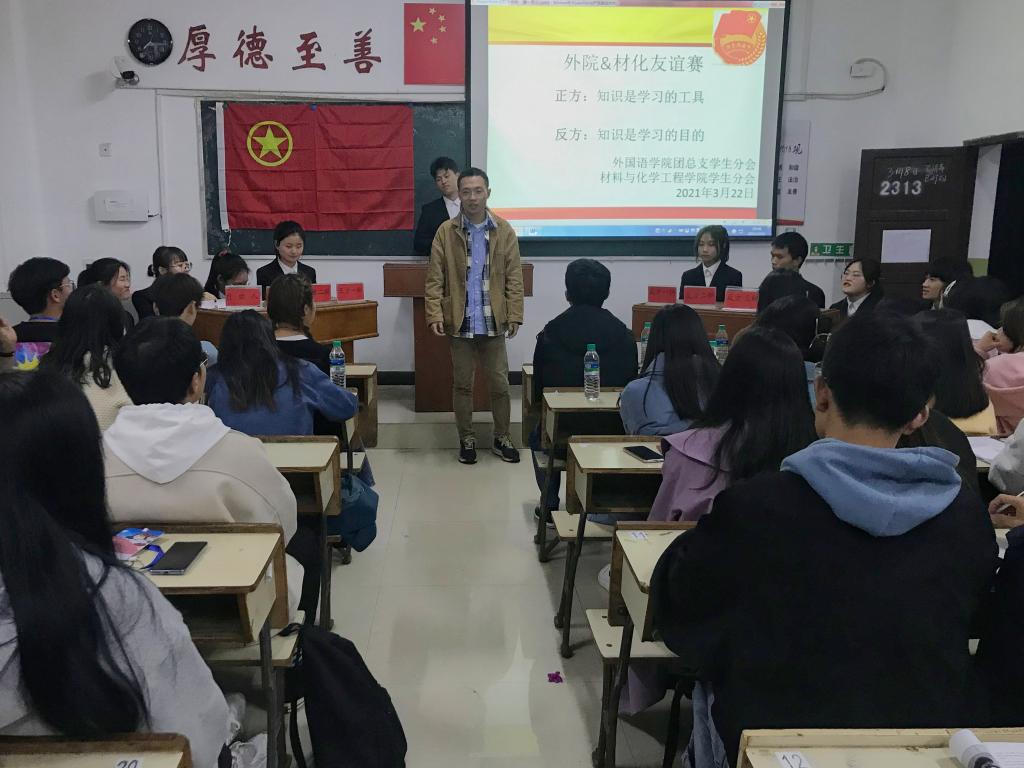 为丰富校园文化生活,展现两院学子的青春风采,beats365亚洲版官网和材料与化学工程学院于2021年3月22日19:00在鼎新楼2313教室举办辩论赛之友谊赛。莅临本次辩论赛的嘉宾有beats365亚洲版官网辩论队指导老师何宇,17级优秀辩手范文佳,19级优秀辩手柯梦婷、廖晓真,19级辩论队负责人朱江伟、章思嘉,材料与化学工程学院员工会主席郭怡彤、副主席刘思敏,18级辩论队负责人徐眉眉,19级辩论队负责人韩莹。