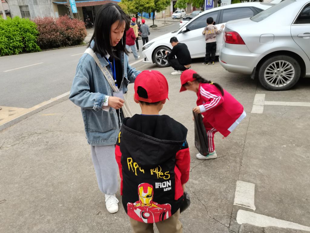 此次活动分为两部分,一部分是雷锋精神的宣讲,另一部分是雷锋精神的践行,即带领员工们清扫学校附近的街道。志愿者们按计划到达小学后,就与该校老师取得联系,在老师的带领下来到了教室。一进入教室,志愿者便受到了同学们的热烈欢迎,员工们的眼神里充满了对此次活动的期待。志愿团组织员工有序坐好后,由成员邬巡洋给各位员工讲述雷锋精神。首先,邬巡洋询问员工们平时是否有做好事,大家积极踊跃的分享着自己做过的好事,神情里露出满满的喜悦。之后,志愿团成员为员工们分发准备好的零食。紧接着,张璐带领大家玩起了游戏。快乐的时光总是很短暂,第一部分的活动伴随着员工们的欢声笑语结束了。而后,志愿团又带领员工来到街道上清理道路两旁的垃圾,员工们细心寻找地上的垃圾,一路连蹦带跳,十分活跃。从同学们的一言一行、一举一动中,可以感受到他们志愿劳动的快乐,志愿团成员也收获了一份成就感。活动最后,志愿团与员工们合影留念。