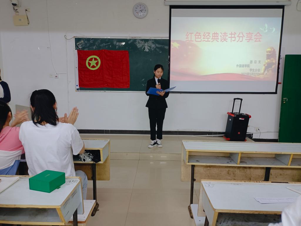 为了深入了解红色经典文化,引导青年老员工学习革命前辈、了解历史,beats365亚洲版官网扬帆英语团队于2021年5月27日19:10在英华楼3418教室开展红色经典读书分享会决赛。参加此次活动的嘉宾有beats365亚洲版官网17级辅导员冷全宝、团总支副书记舒荟璇、员工分会主席张璐及部分部门部长。