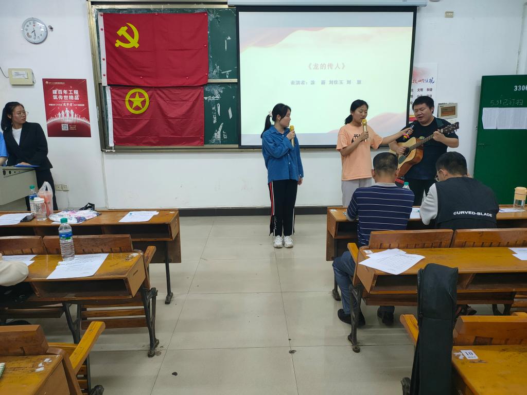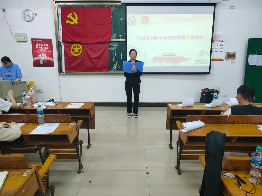 比赛伊始,主持人对革命红歌做了定义:红歌是革命实践的真实写照,它能唤起人们的红色记忆;一首红歌,记录一段峥嵘岁月;一首红歌,象征一面光辉旗帜。如此详细的定义激起了在场观众的浓厚兴趣。比赛过程中,各位参赛选手都放声歌唱,激情澎湃的歌词,激励着年轻一代勇往直前,激励同学们去追寻属于自己的那份荣誉、那份精彩。悦耳的旋律,红歌亦使人精神振奋,经典并没有落入传统音乐的俗圈里,年轻一代也能欣然欣赏。随后,比赛间隙发起了互动环节——猜歌识曲以及党史答题。这一环节既缓解了比赛的紧张气氛,又让在场观众学习到了更多的革命红歌和革命新知。最后,刘书记上台点评此次活动,并细心地鼓励同学们大声唱红歌,相信有了刘书记的肯定,同学们对党歌党史会有更加深刻的理解。随着各位参赛选手上台领奖,本次比赛到此圆满结束。