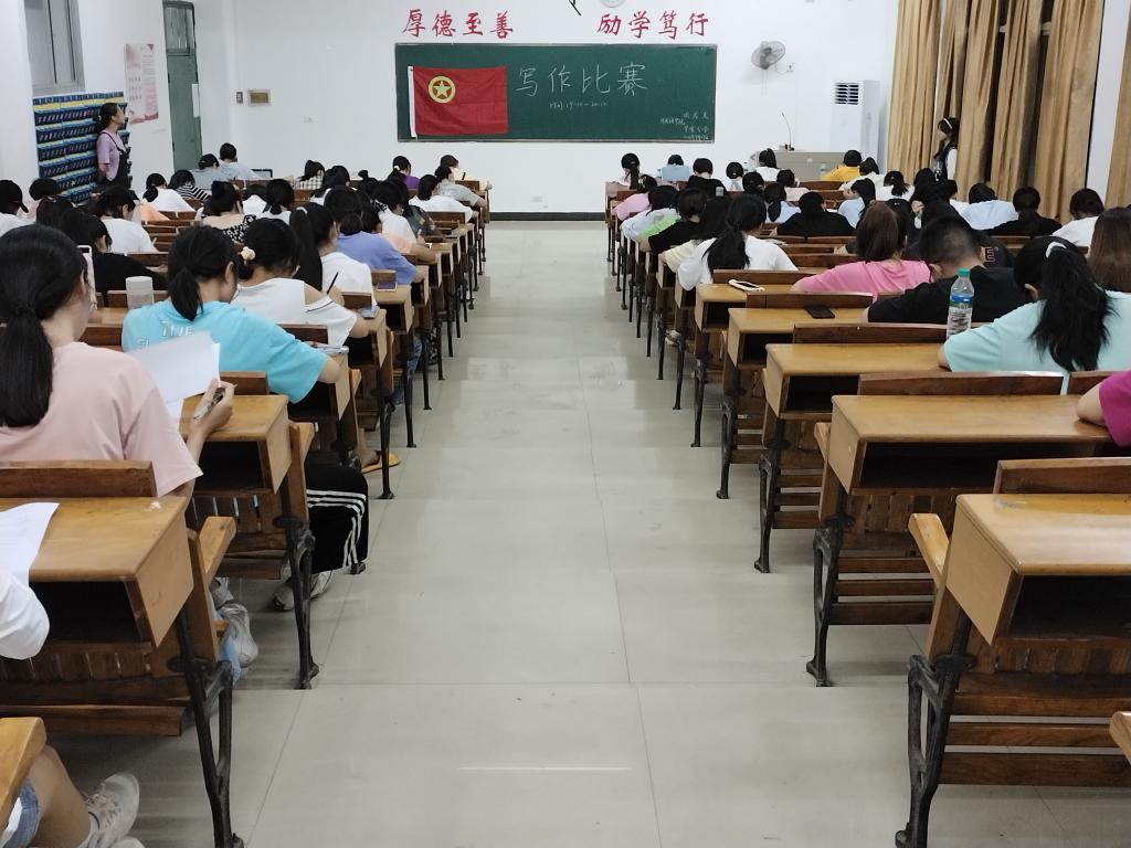 比赛开始,工作人员下发试卷,各位选手振奋精神,立刻进入了紧张的比赛状态,全身心地投入于写作之中。比赛期间,工作人员坚守岗位,密切关注选手状况,步伐轻巧,巡查也毫不懈怠,考场秩序井然有序。选手们专心致志书写作文,落笔有神,赛场上唯余一片沙沙的动人笔声与细微紧张的呼吸声。最后,一声铃响,伴随着工作人员的提醒,各位参赛选手有条不紊,陆续上交了自己的答卷,自信地走出考场,比赛至此圆满结束。