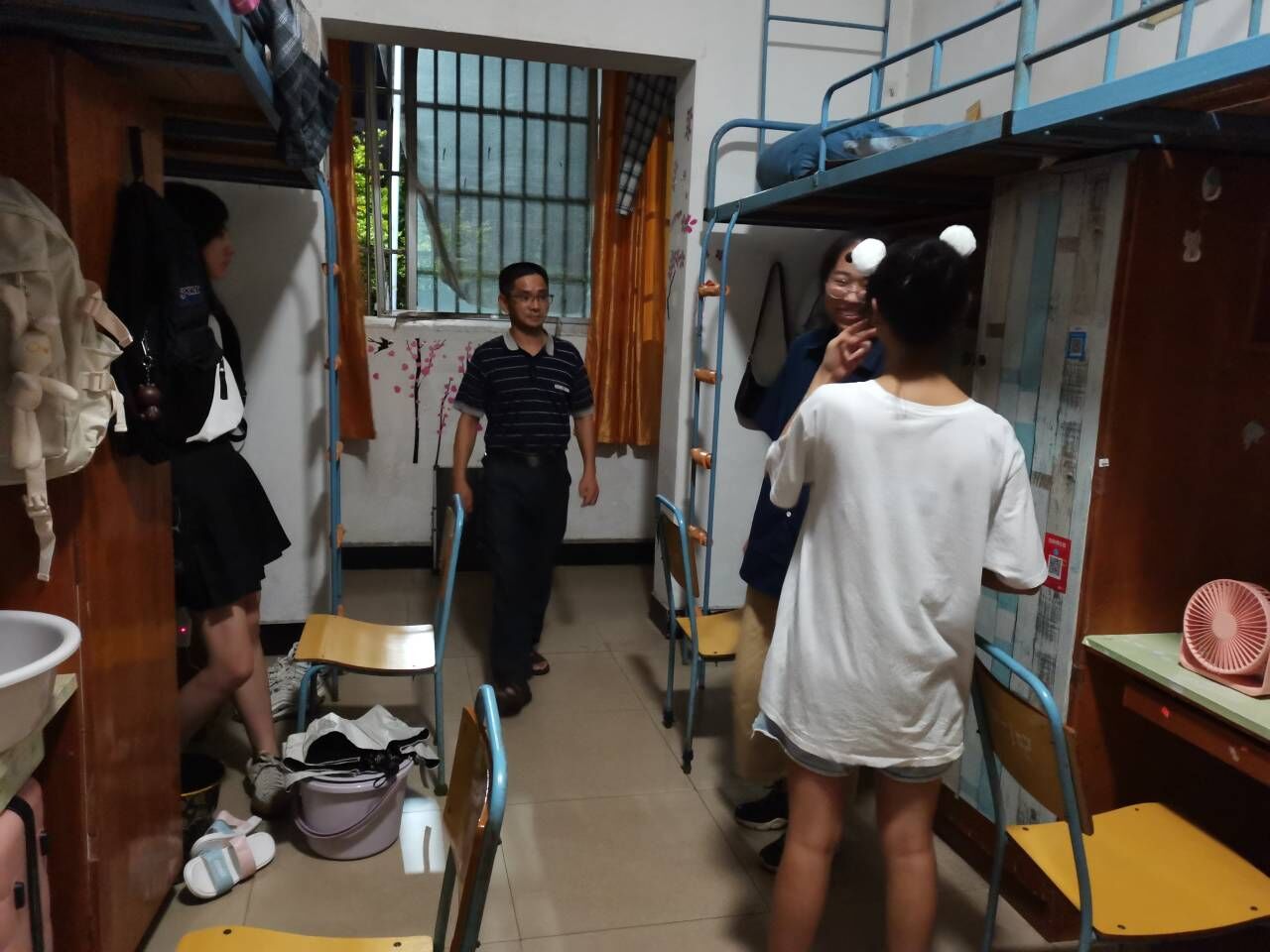 一进入宿舍,各位领导便对新生们刚进入校园的状况和感受进行细致询问,同各位新生亲切交谈,了解同学们的家乡、家庭情况和专业、入校感受等,并就员工提出的生活和学习方面的问题进行解答。领导们也提醒同学们要注意宿舍安全,生活中遇到困难及时和辅导员沟通交流。刘书记还向新生提出殷切期望,希望同学们尽快转变角色,熟悉校园环境,建立和谐友好的人际关系,以积极的心态和良好的面貌适应大学校园生活。他勉励大家要珍惜大学时光,刻苦学习知识,在新的环境中认真学习、健康成长。同学们受益匪浅,纷纷表示会牢记教诲,提升自我。