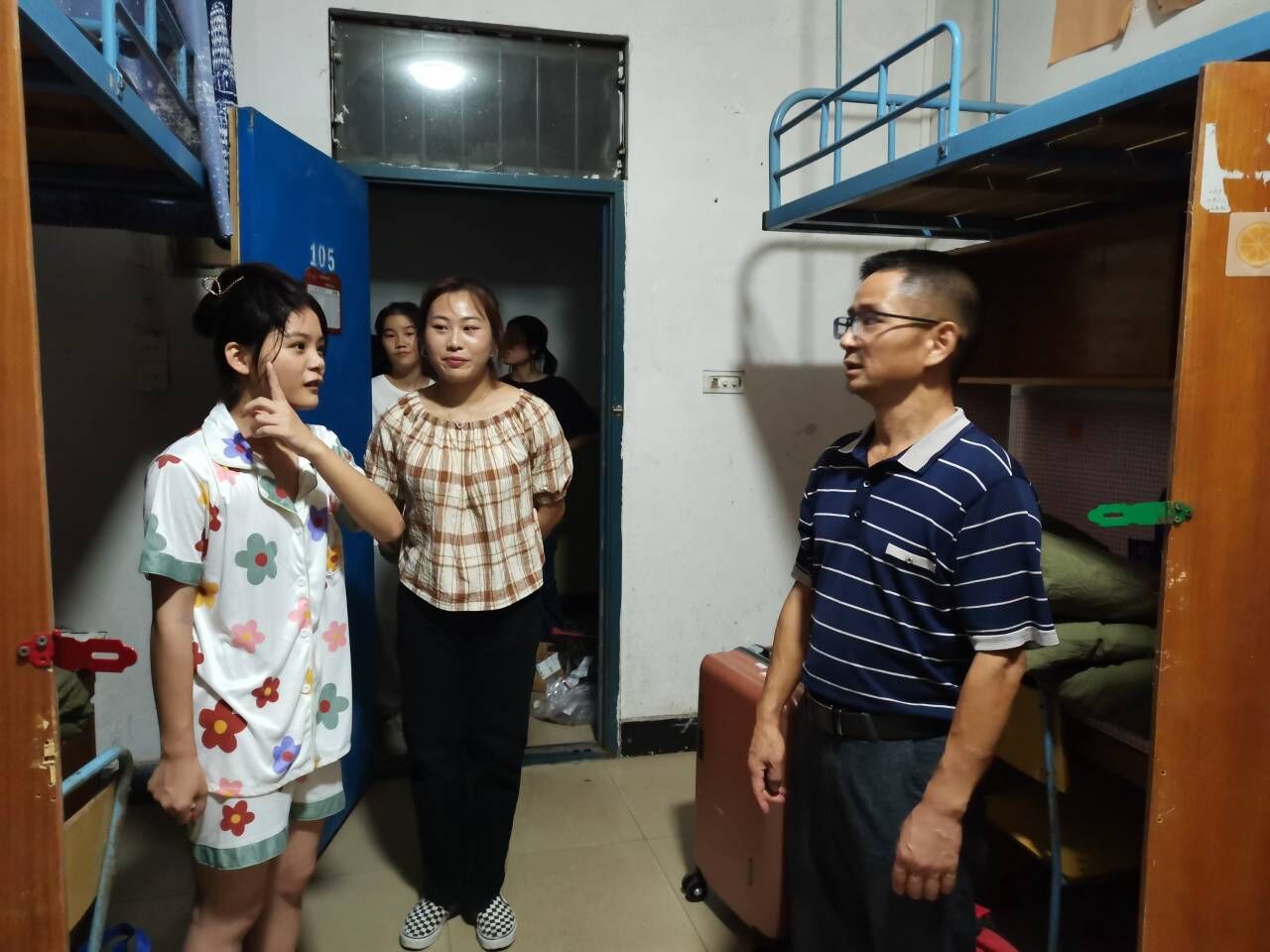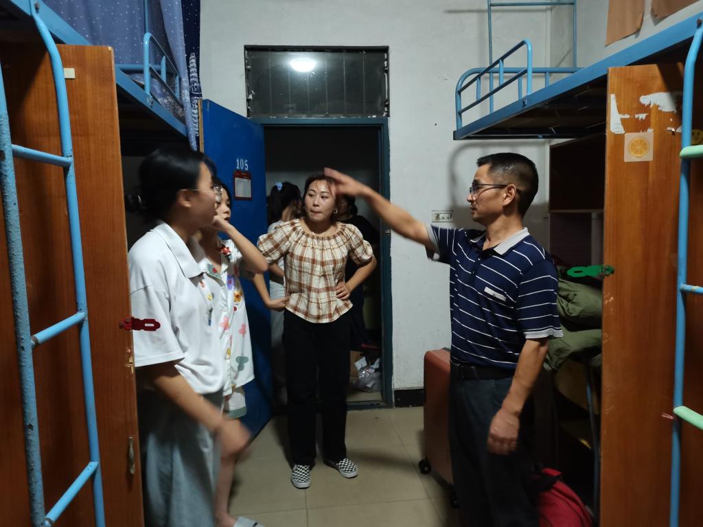 刘书记礼貌敲门得到新生们的热情许可后进入寝室,新生们对刘书记的到来感到激动,热情的欢迎并纷纷与刘书记礼貌打招呼问好。刘书记也十分亲切地回应同学们,并开始与同学们谈论起来。 在探望中,刘书记细心询问新生的入校情况,关心新生的生活安排,并耐心解答了新生的各种问题。对新生们的心理健康与生活环境关心之致,书记告诉同学们应在校园里积极向上,在学习的同时也要处理好人际关系,结交志同道合的好友。但是也得清楚交友谨慎,谨防诈骗。若已发生被诈骗的事情,可以向学校报告,学校会全力帮助同学们。同时新生们还得明辨是非善恶,在校园里安全、快乐地学习,才能不辜负书记对新生的关心与期望。