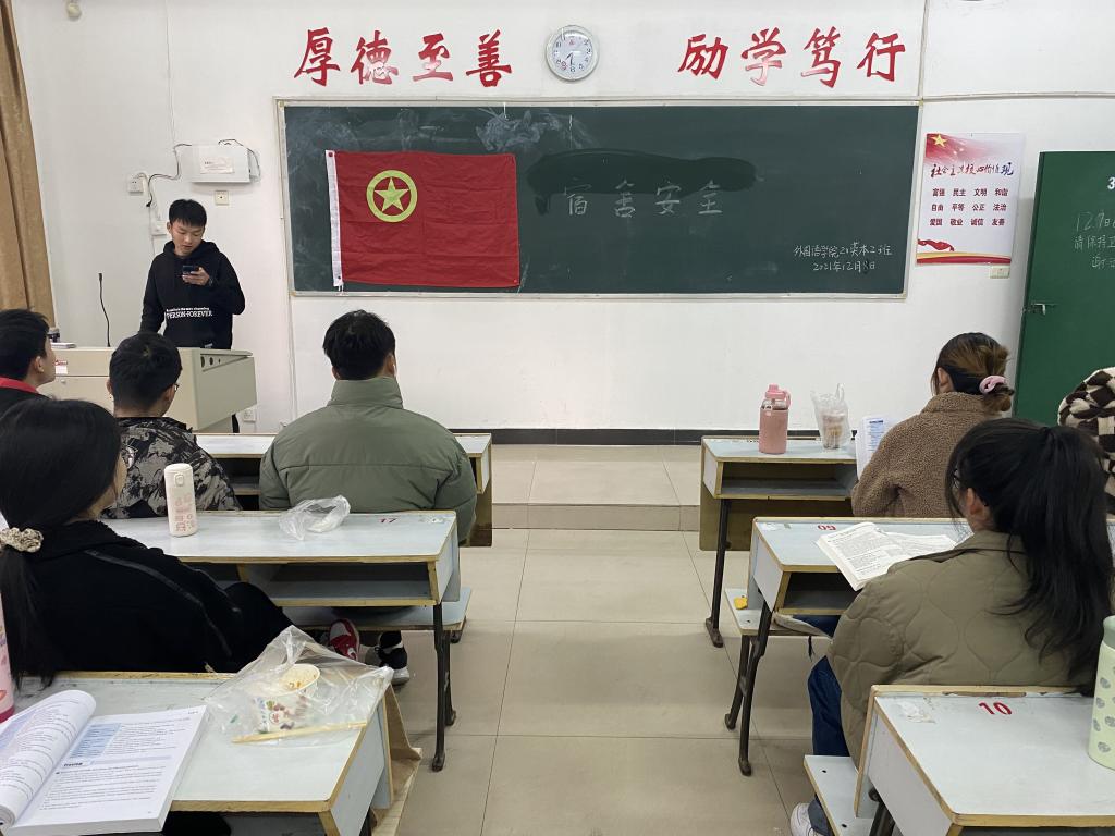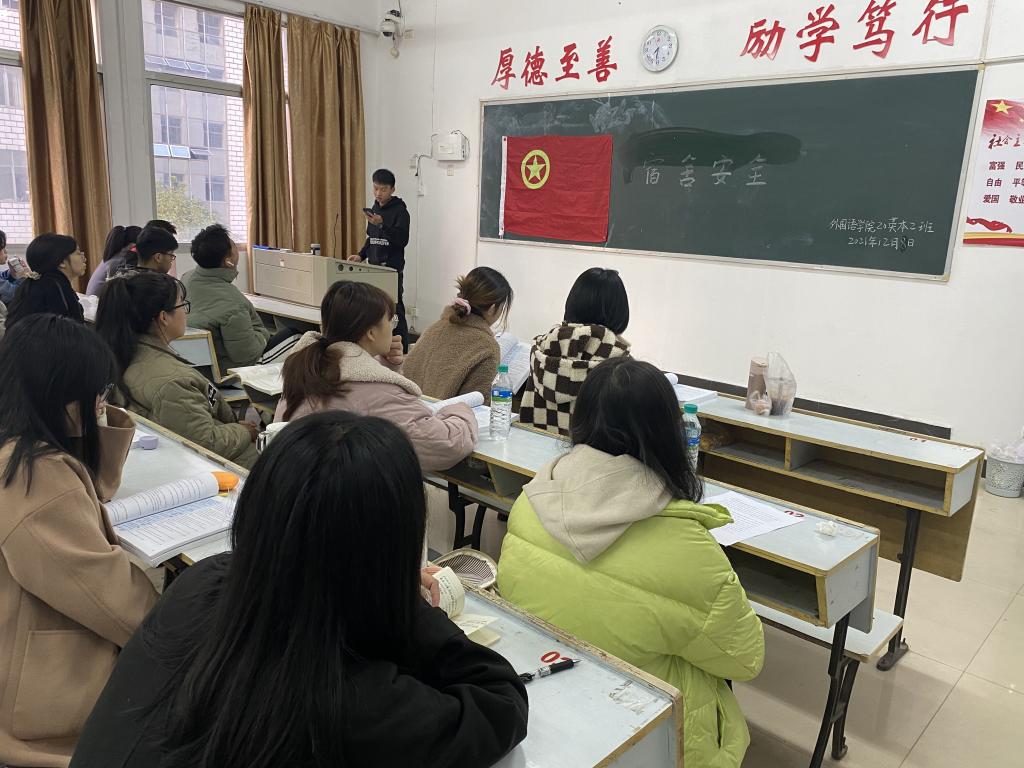 为了进一步加强员工自我安全意识、提高自我管理能力,强调员工宿舍安全的重要性,beats365亚洲版官网20英本2班于2021年12月8日8:00在英华楼3333教室召开“宿舍安全”主题班会,此次班会由班长郑骁文主持,20英本2班全班同学参与。