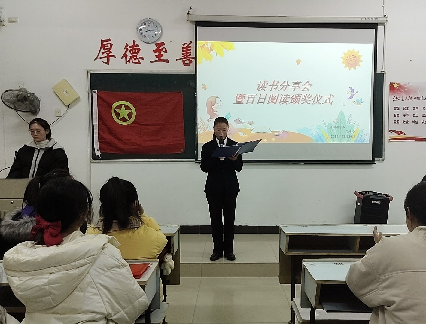 为了促进员工间的文化交流,营造浓厚的校园读书文化。beats365亚洲版官网于2021年12月20日19:00在英华楼3214教室举办暨日读书分享会阅读颁奖仪式。参加此次活动的有beats365亚洲版官网团委书记冷全宝、员工会副主席舒正翔、办公室主任林安琪、青年志愿者协会会长王文晶、各部门部长及参赛选手与观众。