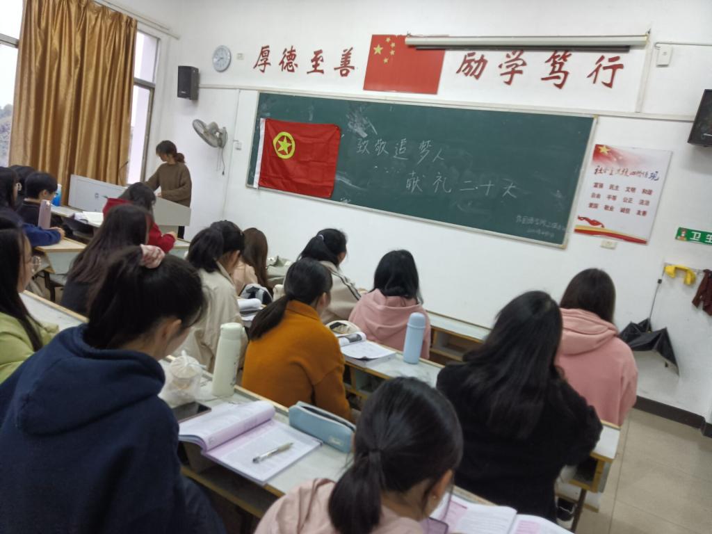 班会开始,由班长通过PPT让我们深入学习习近平新时代中国特色社会主义思想,让我们充分的了解二十。也希望同学们能成为中华优秀传统文化和红色文化的传承者、终生学习者、责任担当者、问题解决者和阳光成长。其次,班长也通过一些知识的抢答形式,让同学们更加清楚的了解并且知道二十大的召开意义。最后,各位班干也提出在未来,无论遇到什么事,都应脚踏实地,肩负使命,为祖国的辉煌而献力。