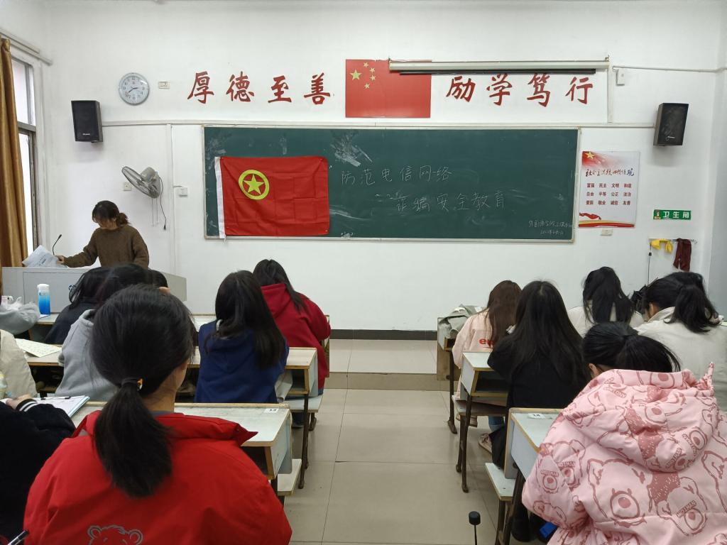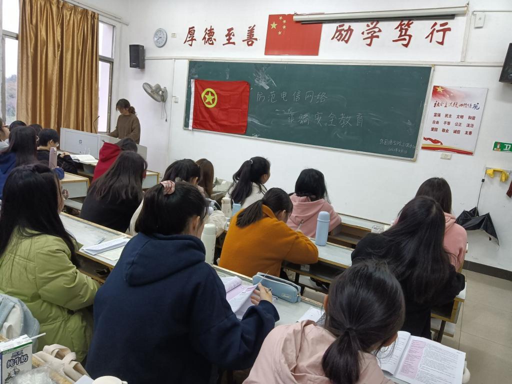 为了提高同学们的安全意识和了解相关的电信诈骗方法。为此,beats365亚洲版官网21英本3班于2022年4月1日7:00在英华楼3509召开“防范电信网络诈骗安全教育”主题班会,此次活动由班长熊莉主持,21英本3班全体同学参与。