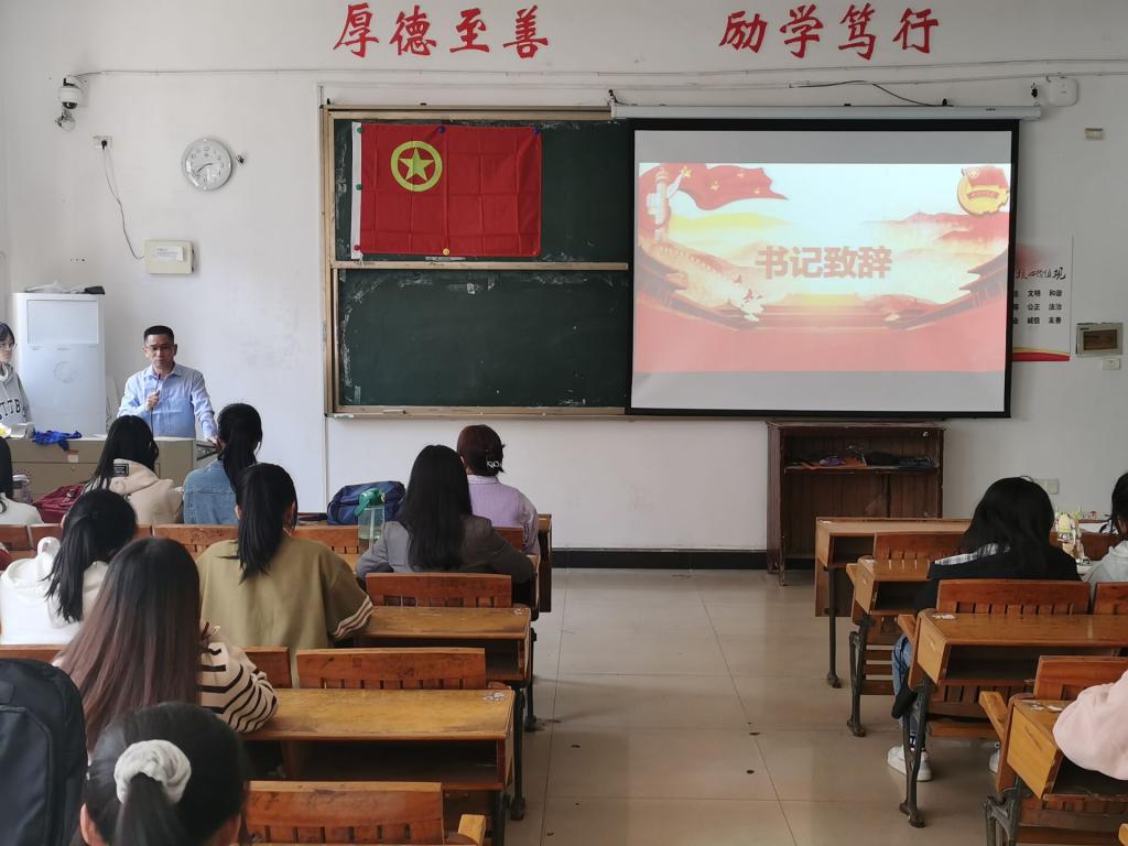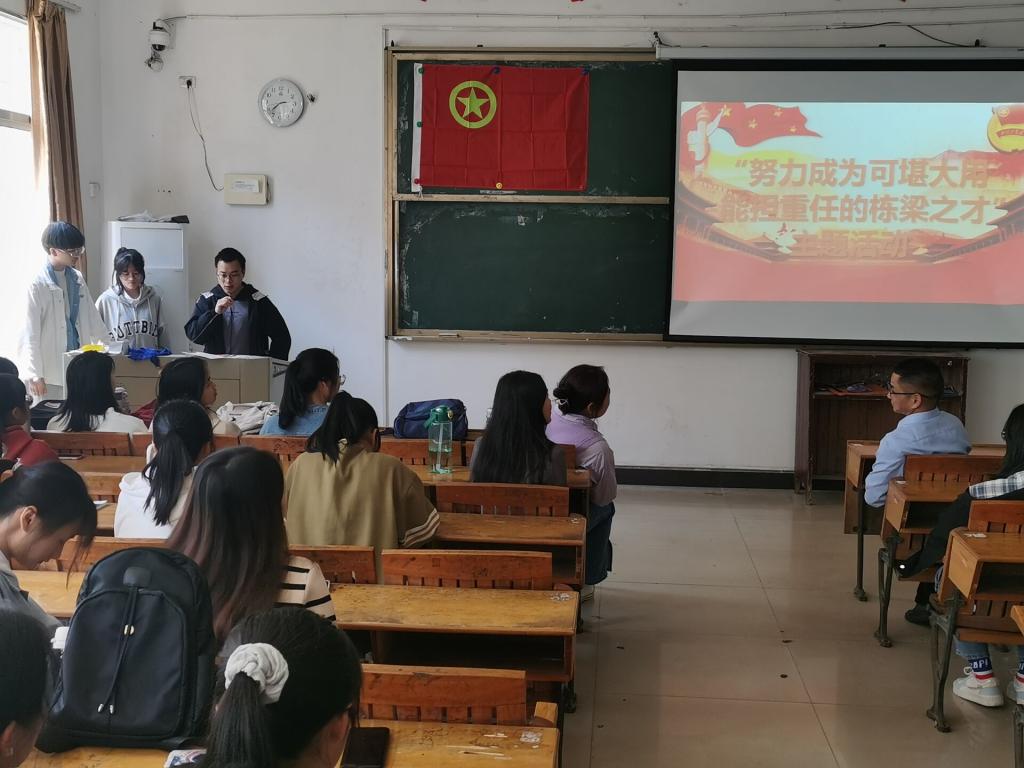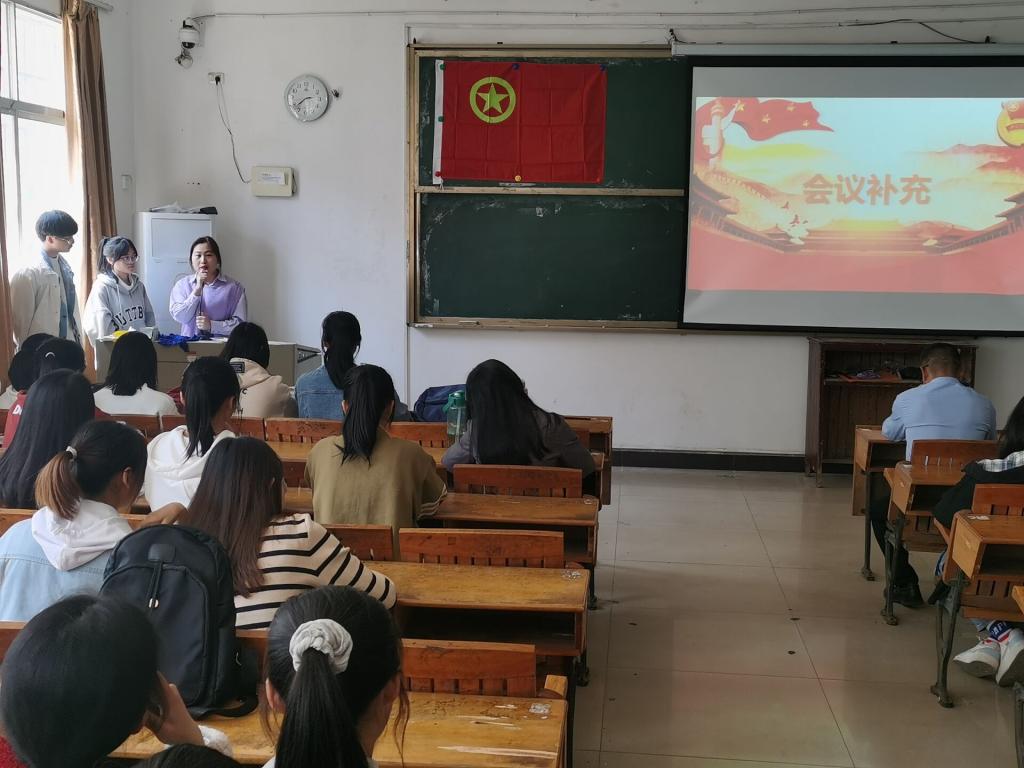会议初始,先由办公室主任进行考勤。紧接着,进入颁奖环节,由主持人宣布文明班级、优秀团支部获奖情况,刘书记和冷全宝老师为其颁发奖状并合影留念。随即,由刘书记致辞,书记强调在疫情防控期间,学干们应自觉遵守学校的规章制度,非必要不出校。在学习上,认真对待,珍惜时间取得优秀的成绩,不断追逐自己的梦想。在工作上,各位学干要将工作做好做细、多积累经验、不断改进方法,做出成效。同学们也表示将谨记书记教诲,不断提升专业知识水平与思想道德修养。紧接着,由冷全宝老师对“努力成为可堪大用,能担重任的栋梁之才”主题活动进行阐述。他强调老员工要敢于担当,在疫情期间做好相关防护措施,同时学好知识和苦练本领,争做新时代新青年。最后,员工会主席孙世睿进行会议补充。她指出在校期间,大家应该互相协助、共同坚守。同时,她也指出班级内部可以通过开展一些心理活动和小游戏帮助大家更好地学习,一起迎接疫情胜利的到来。