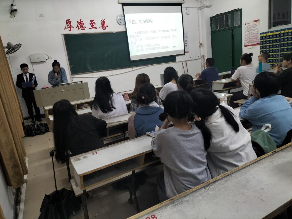 大会第一项,由员工会主席孙世睿对昱辉志愿服务团的成立进行介绍。紧接着,由志愿服务团团长深入介绍该组织。她从志愿服务团的成立过程、架构等多方面向大家展开介绍,同时还阐述了立足学校、立足社会、服务学校、服务社会的志愿团理念。台下观众深表赞同。大会第三项,由刘书记上台致辞,他向大家介绍了服务团形成的过程,同时也告诉大家,作为服务团的成员需要有坚定的目标以及初心使命。同时,他还希望作为“元老”的志愿服务团的各位成员们可以尽心尽责地将服务团越办越好。最后,在大家的掌声与期待中,此次昱辉志愿服务团成立大会圆满落幕。
