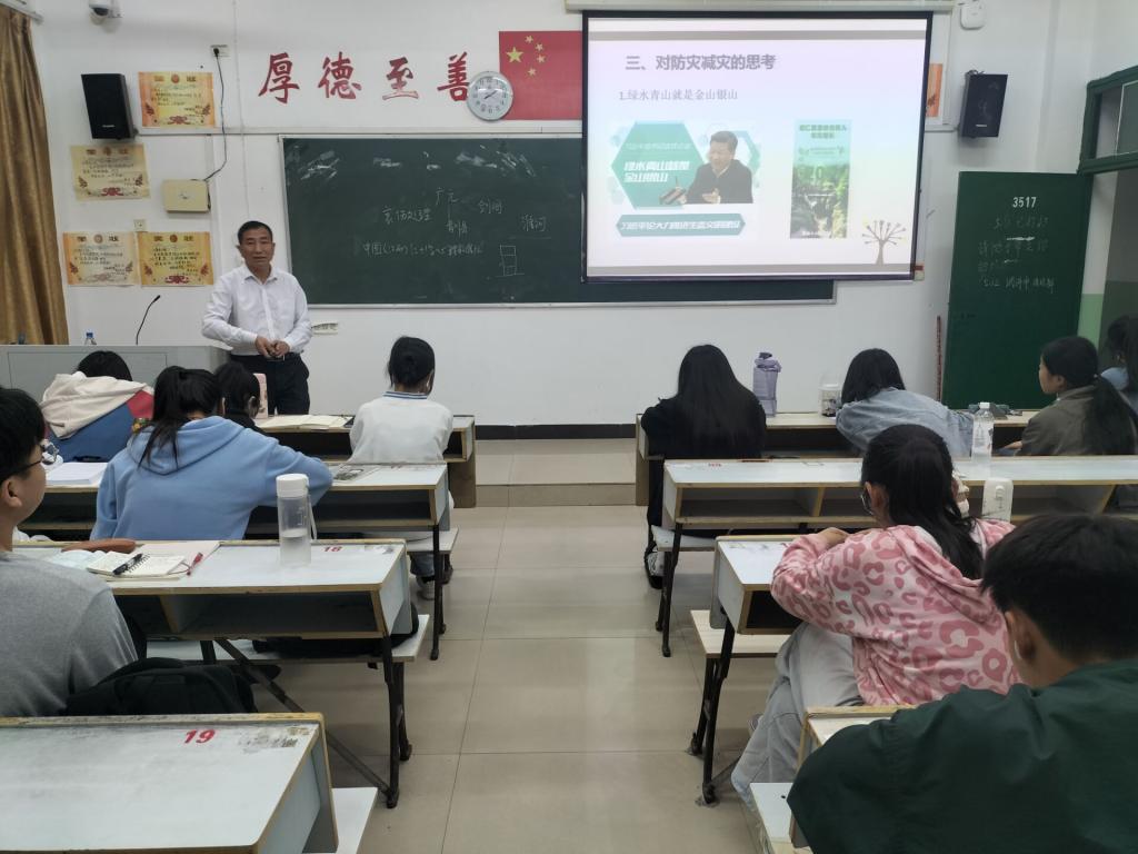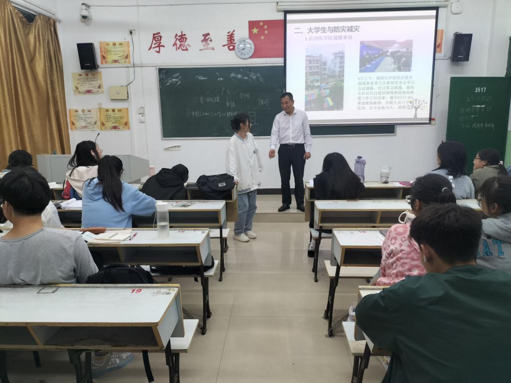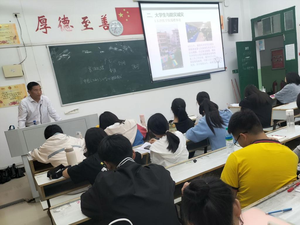 讲座开始前,由王卫民老师向大家分享了自己曾经作为一名志愿者服务社会的亲身经历,更好地贴合了本次宣讲活动的主题。此次活动一共分为三大板块,具体介绍了防灾减灾日的由来、灾害种类、防害措施等。随后,宣讲正式开始,首先为大家展示的是历年来防灾减灾日的主题。紧接着,他为同学们介绍了各种类型的灾害以及如何正确保护自己生命安全并积极与大家进行互动和演示。在互动过程中还采取了有奖答题的模式,同学们也踊跃地回答问题,现场氛围十分活跃。之后,王老师又通过向大家举自己身边的例子来分析灾难给人们带来的危害以此提醒大家在校园应时刻注意安全。整个宣讲过程之中,王老师特别强调火灾问题,这一点,在场的观众们也积极提出了自己的看法,并且给出了非常正确全面的措施,体现了大家较强的校园防火意识。最后,老师希望同学们的校园安全意识内化于心、外化于行,一起度过美好的大学时光。