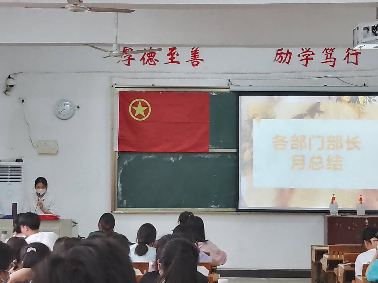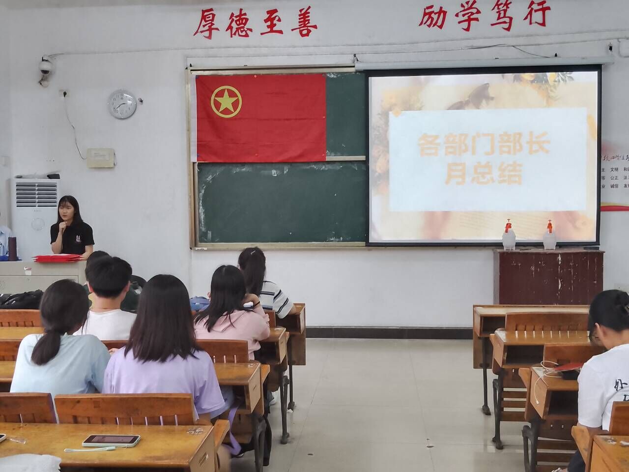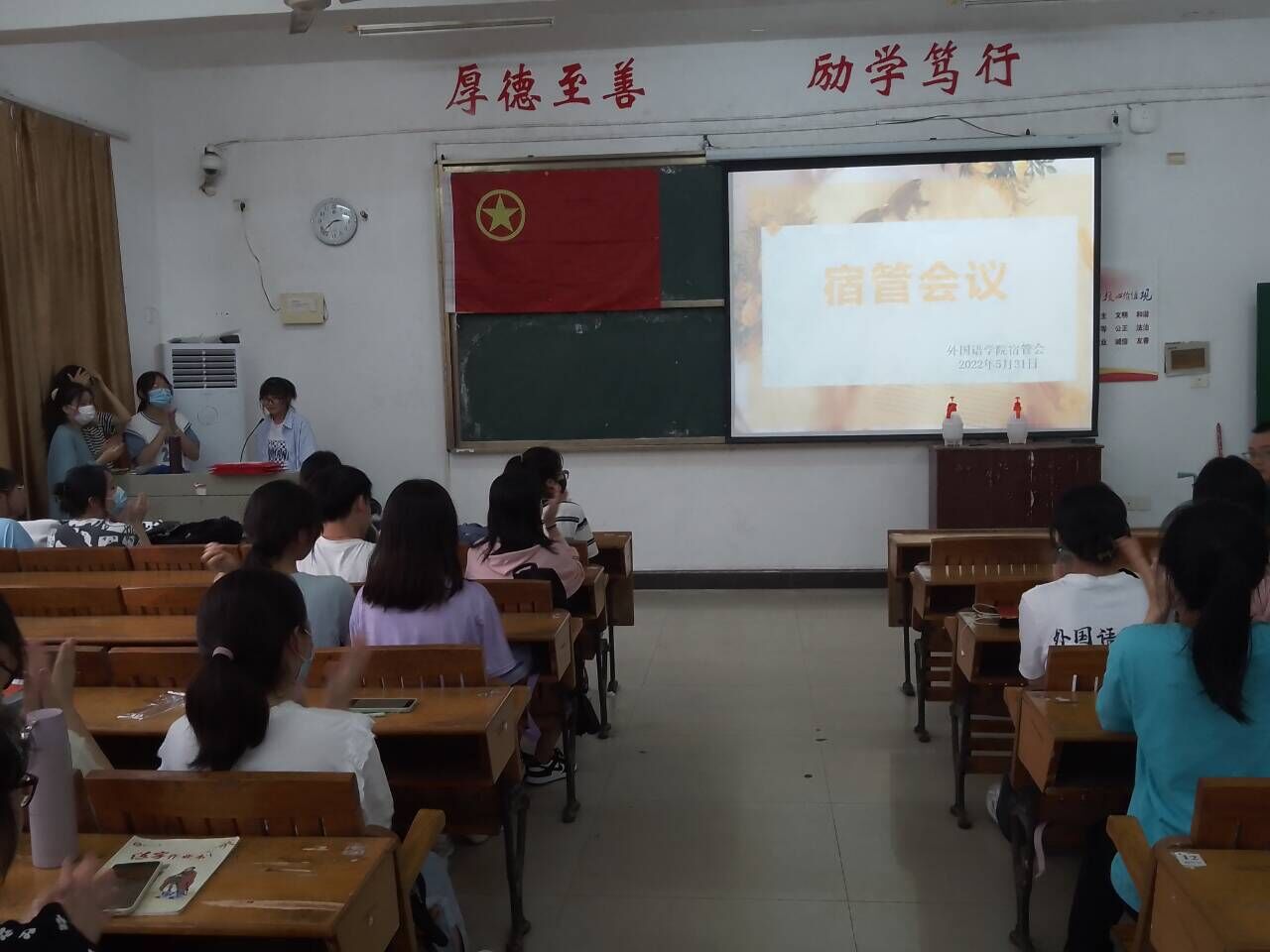 会议开始,由宿管会各部门部长对这段时间以来的宿舍管理工作进行总结。并由宿管会主任郭梅玉学姐进行补充。接着进行“特色寝室”颁奖仪式,为特色寝室颁奖的同时,更为各个寝室树立了学习的榜样。之后,由刘书记上台致辞,他要求宿管会成员对各宿舍就寝状况进行重点检查,严格执行查寝工作,严禁出现大功率电器,同时还要防止员工夜不归宿的现象发生。强调各负责人员应加强责任意识,提升宿舍内务管理水平,努力营造团结、温馨、和睦的宿舍文化氛围。刘书记还强调切莫相信网络骗子,做好防诈骗工作。最后,刘书记关于各位成员的查寝礼仪及寝室卫生检查的注意事项进行说明,希望各位成员在查寝过程中要注意礼貌、端正态度,认真对待寝室检查工作。