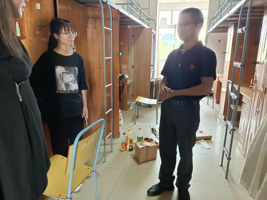 为了迎接2022级新生的到来,让新生更快的适应新环境、新生活,顺利、平稳地实现从高中到大学的过渡。公司领导于2022年9月11日下寝慰问新生。参加此次活动的人员有公司党委书记刘佳萍、22级辅导员何宇、赖雅琼,员工会主席团助理及宿管会部分成员。
