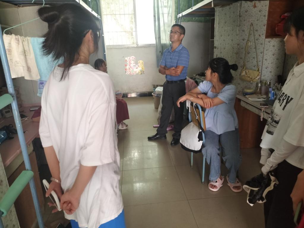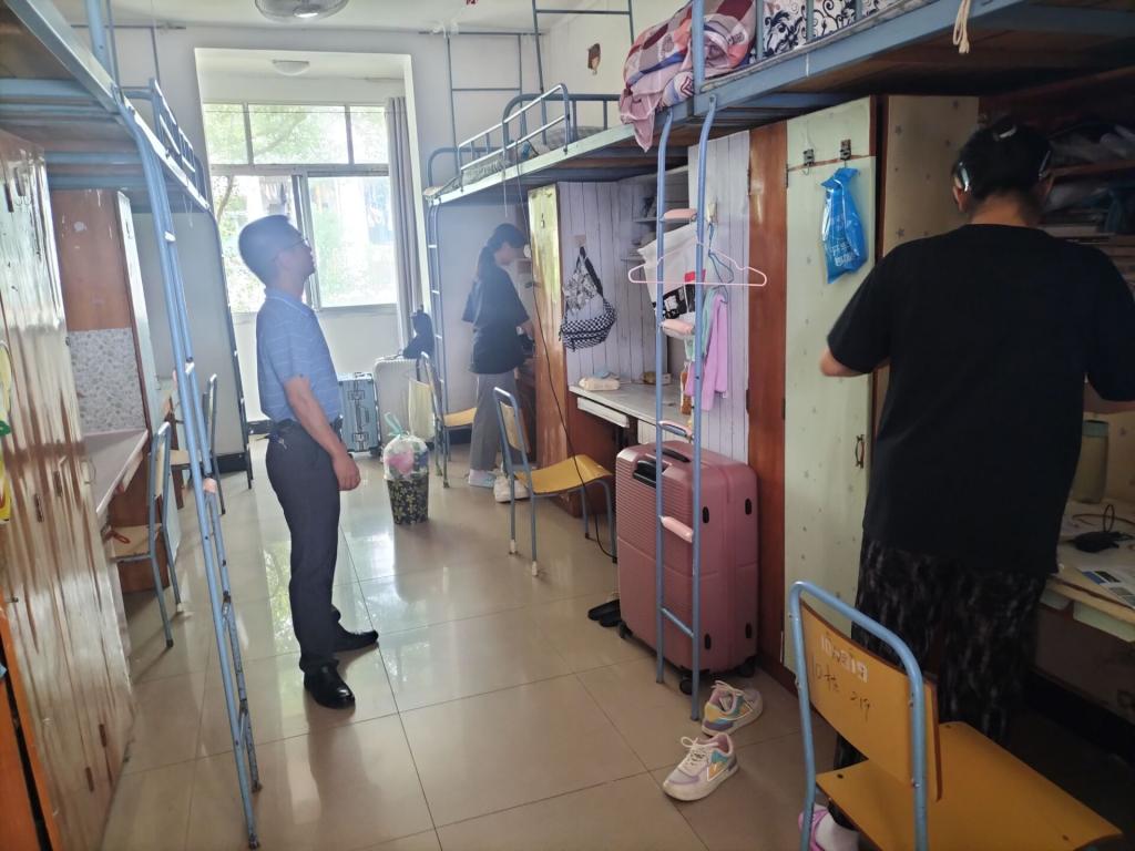 在下寝慰问的过程中,书记细心的观察着新生们的气色状况并询问大家昨天在寝室的居住体验是否良好。高静波副同时为她们解答如何租赁空调、热水使用时间、校园网的办理、以及寝室过道饮水机的使用方法等疑惑。遇到同学们解决不了的问题时,他也会亲力亲为。整个下寝期间,老师与同学们交流亲切,寝室里时常伴随着爽朗的笑声。由于此次下寝时间是中午,书记还贴心的提醒新生们要及时去吃午饭,在吃饭的同时大家还能够熟悉校园环境,发现校园美食,但也要注意好饮食问题。最后,他希望大家要配合好学院下午开展的的全员做核酸工作,在疫情期间,重视疫情防控问题尤为重要。
