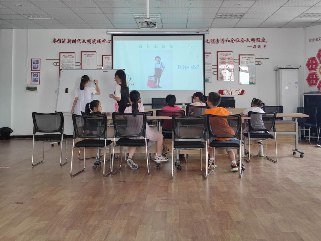 早上8:20,志愿者们便整装待发,满心欢喜地坐上了前往社区的小车。到达目的地,在社区书记的带领下她们见到了前来上课的小朋友们,他们汇聚一堂对今天来上课的“小老师们”充满了好奇。简短的自我介绍后,志愿服务活动正式开始。在本次教学过程中,志愿者们将所有的孩子根据年龄进行了分班教学,课程历时两小时,总分为两小节。在第一小节课上,志愿者们向同学们讲解了事先准备好的英语课程内容,他们根据同学们不同的英语基础,本着以培养兴趣为主的想法,适宜的烘托了良好的英语学习环境。在丰富的游戏式教学中又结合了日常的生活经验,减轻了小朋友们学习英语的压力,整个教学过程都非常的愉悦,孩子们也能做到积极配合。短暂的课间休息后,志愿者们又将三个班的小朋友们都聚集在了一起,开始了娱乐环节,在这里他们以娱乐的模式为孩子们复习上节课所学的英语知识,课堂氛围十分轻松,整个教室都遍布着欢声笑语。在这愉悦的氛围中,这堂课进入了尾声,小朋友的家长也陆续到来,将孩子们接走回家。本次志愿服务活动到此结束。