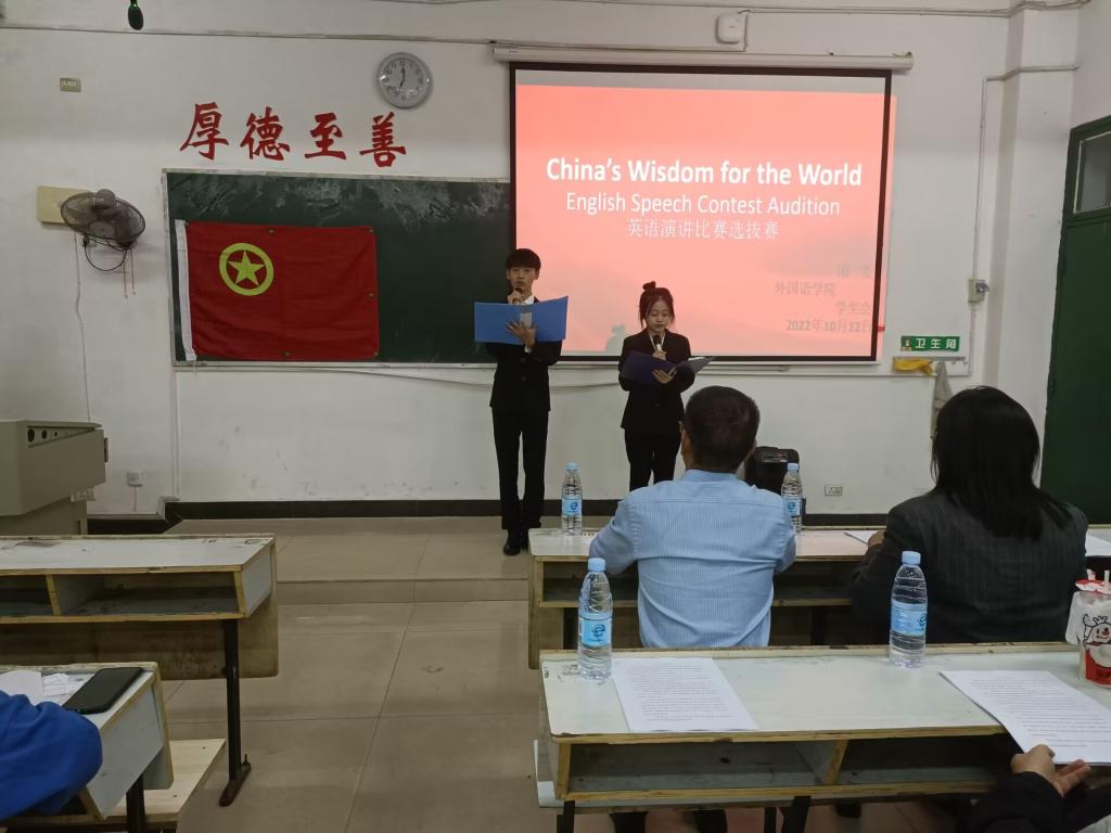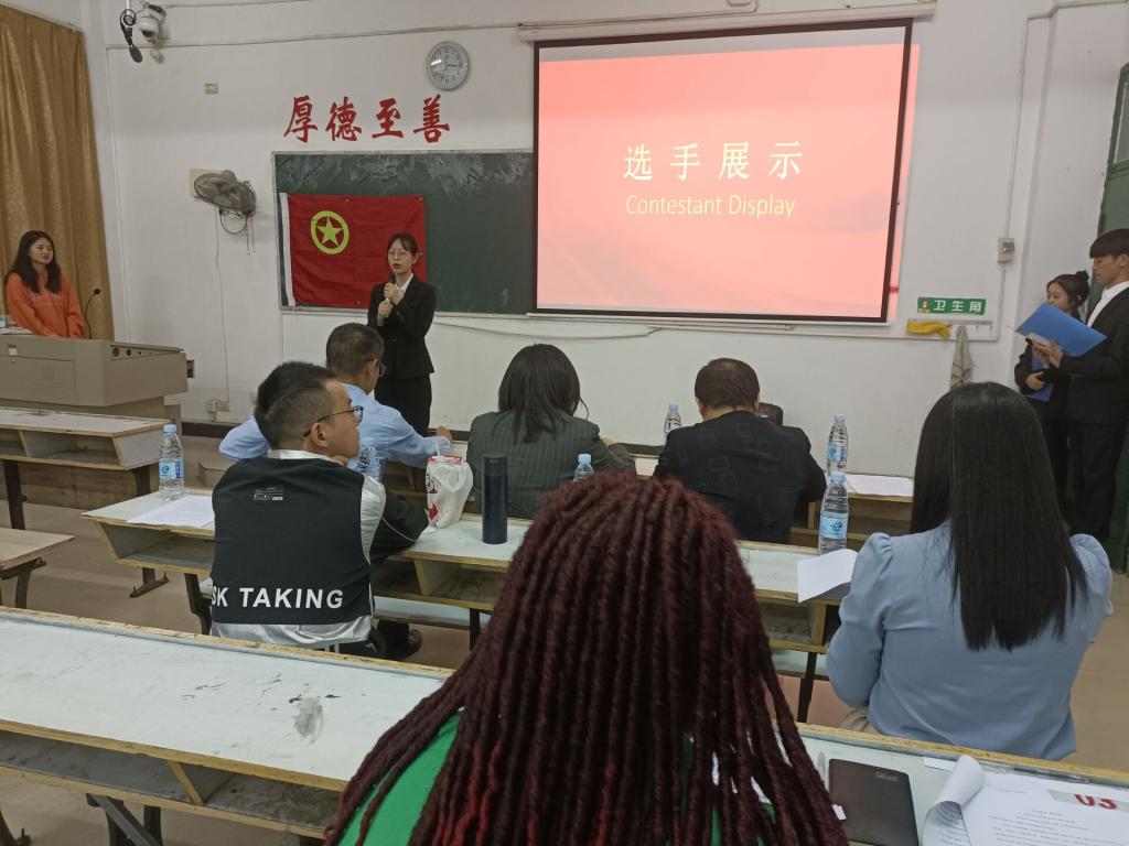 为了提高同学们学习英语的热情,为他们提供一个展现英语风采的舞台,帮助员工扩展全球视野、理解中国、传递智慧。beats365亚洲版官网于2022年10月12日晚上19:00在英华楼3214教室举办“外研社·国才杯”英语演讲比赛选拔赛。参加此次活动的人员有公司党委书记刘佳萍、教学科研科科长巫宜霖、英语教研室主任赖康生、青年骨干教师谌青、团委书记冷全宝、外教老师Joey和Fiona以及各部门部长,21、22级观众。