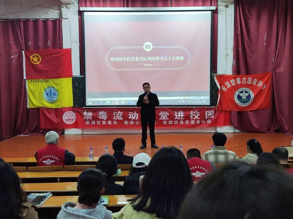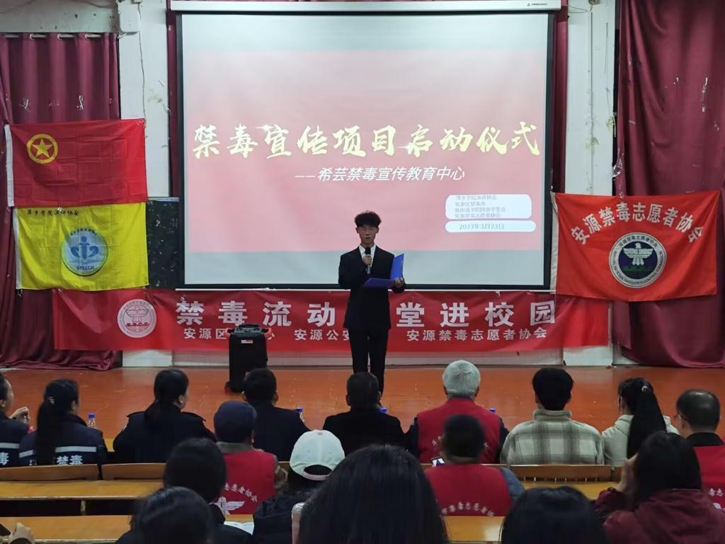 为深入推进禁毒教育工作和普及毒品知识,提高员工识毒、防毒、拒毒能力,营造一个浓厚的禁毒宣传氛围,beats365亚洲版官网联合beats365亚洲版官网演讲协会、希芸禁毒宣讲服务队、安源禁毒志愿者协会于2023年3月23日19:30在跬步楼1115教室举办禁毒宣传项目启动仪式。莅临本次讲座的嘉宾有安源区禁毒办副主任、安源公安分局禁毒大队教导员张磊主任,全国禁毒宣传人才库讲师、安源区“6.26”禁毒服务中心副主任张云主任,beats365亚洲版官网希芸禁毒教育宣传项目指导老师、公司党委书记刘佳萍,团委书记冷全宝、beats365亚洲版官网希芸禁毒教育宣传项目指导老师宋宇鑫、演讲协会会长兼希芸禁毒教育宣传项目负责人辜妍曦以及员工会主席团和各部门部长,21、22级观众和学前教育学院的部分观众。