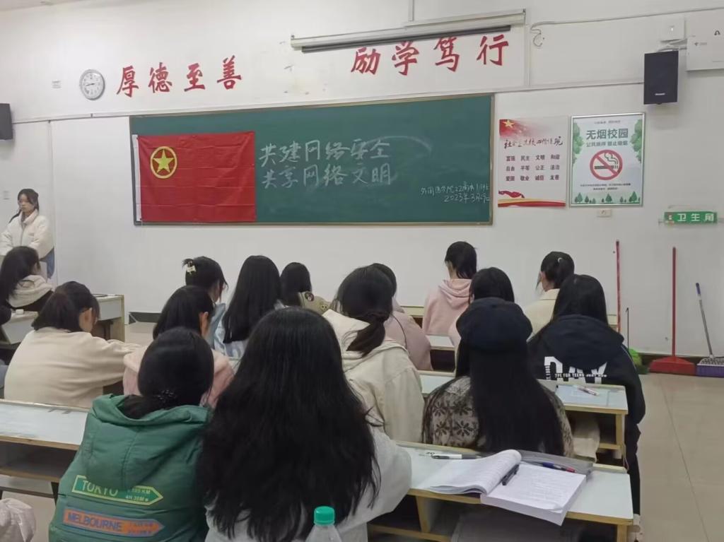 通过此次主题班会,让大家了解到只有加强网络文明建设,发展积极健康的网络文化,才能营造更加清朗网络空间。弘扬新风正气,深化网络生态治理,网络空间正能量更加充沛,才能让全社会共建共享网上美好精神家园的氛围日渐浓厚。呼吁大家行动起来,营造网络安全人人有责、人人参与的良好氛围。