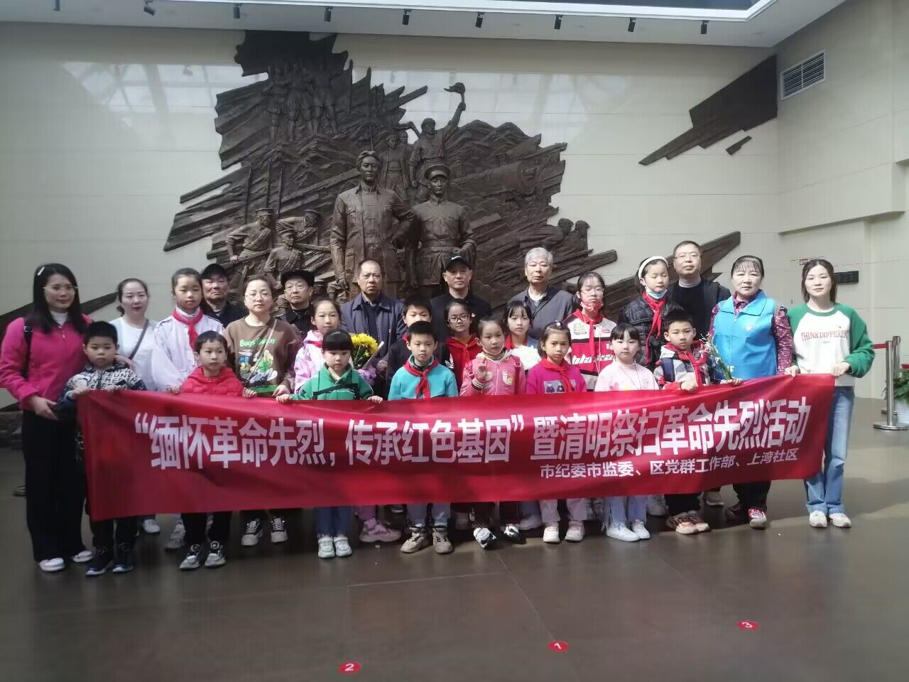 活动开始,两个前往上湾社区的志愿者和钱老师在上湾社区集合完毕后带领上湾社区所有大班小朋友并引导其家长和党员进行签到,然后乘坐大巴抵达秋收起义烈士陵园。到达目的地后,钱老师和志愿者们先带领着他们走进卢德铭烈士陵园,然后稍微进行休整。而后,大家一起又参观了纪念秋收起义的场馆。紧接着,他们在秋收起义广场瞻仰秋收起义纪念碑,全体人员依次完成肃立、整理,默哀等环节,现场环境肃穆又感动。随后,党员重温了入党誓词。而后,全体人员向秋收起义的烈士们献花。献花完毕后,他们还进入了场景壮观的山口岩水库。最后,沿途返回社区,在大巴车上唱起了京剧,现场氛围十分活跃。另一批志愿者在指定地点集结后一起顺利抵达金陵并与孩子们碰面。他们首先给各个年级的小朋友科普了一些关于清明的小知识,然后和往常一样在本年级的教室组织进行英语教学。在10:30时,由“昱辉”活动部部长辜妍曦带领大家前往大教室集合,并和小朋友一起玩扔起了手雷游戏,游戏规则为,被扔中的人要进行表演才艺,有趣的活动很好地释放了孩子们的天性,欢笑声不断。短暂的游戏娱乐后,在11点时志愿者们带领小朋友前往社区进行树木施肥活动,在路上,辜妍曦多次嘱咐各个年级负责的志愿者清点人数并保护好大家的安全。大家手拉着手、开开心心地到达了目的地。到达后,小朋友们积极参与施肥活动并且在小广场和志愿者们一起玩耍。最后,志愿者们带着愉快的心情回到了校园同时也收获了许多。