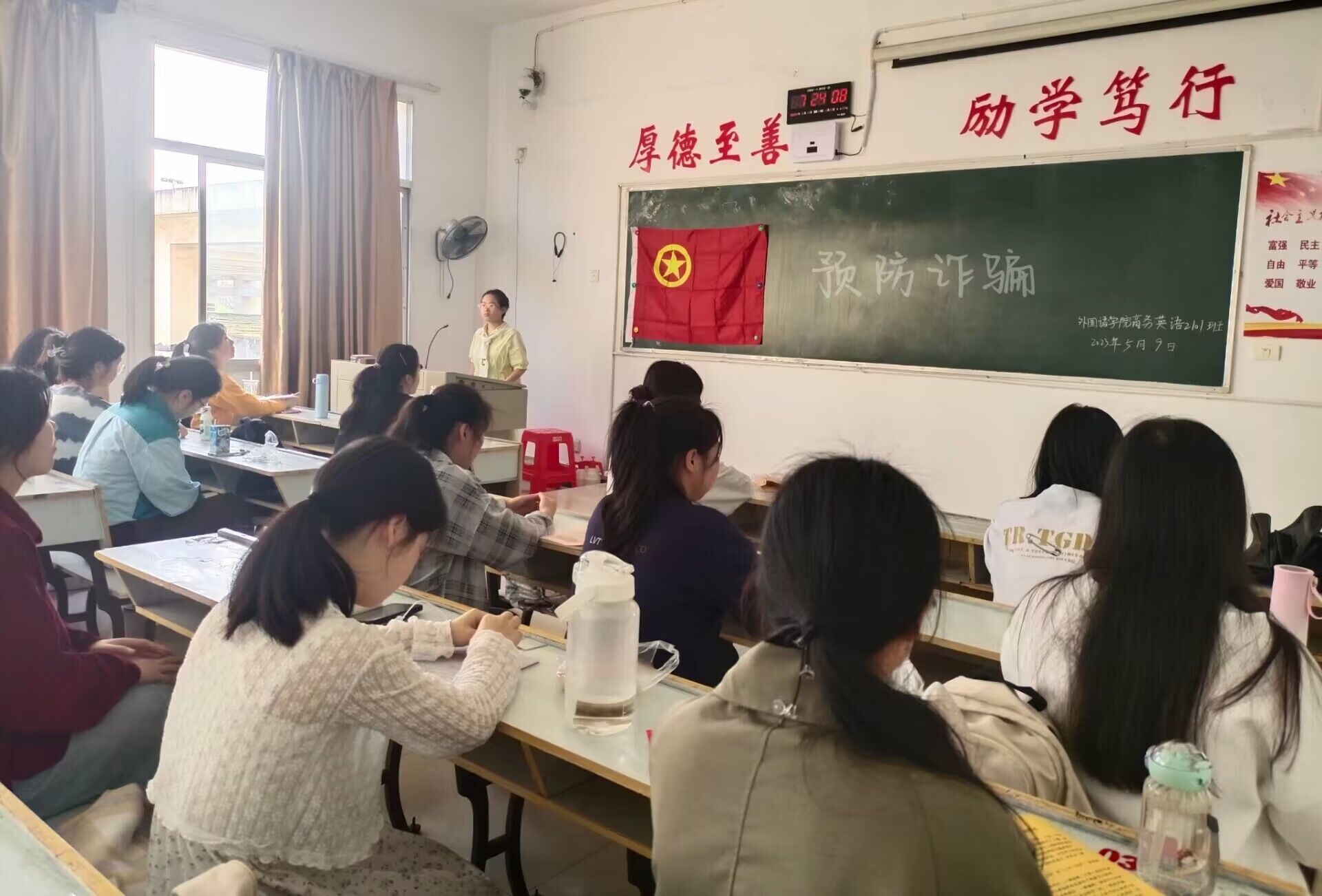 为了增强大家的防骗意识,提高自我防范能力,beats365亚洲版官网商务英语2101班于2023年5月9日在英华楼3316教室召开“防诈骗”主题班会,此次活动由班长郭根梅主持,商务英语2101班全体同学参与。