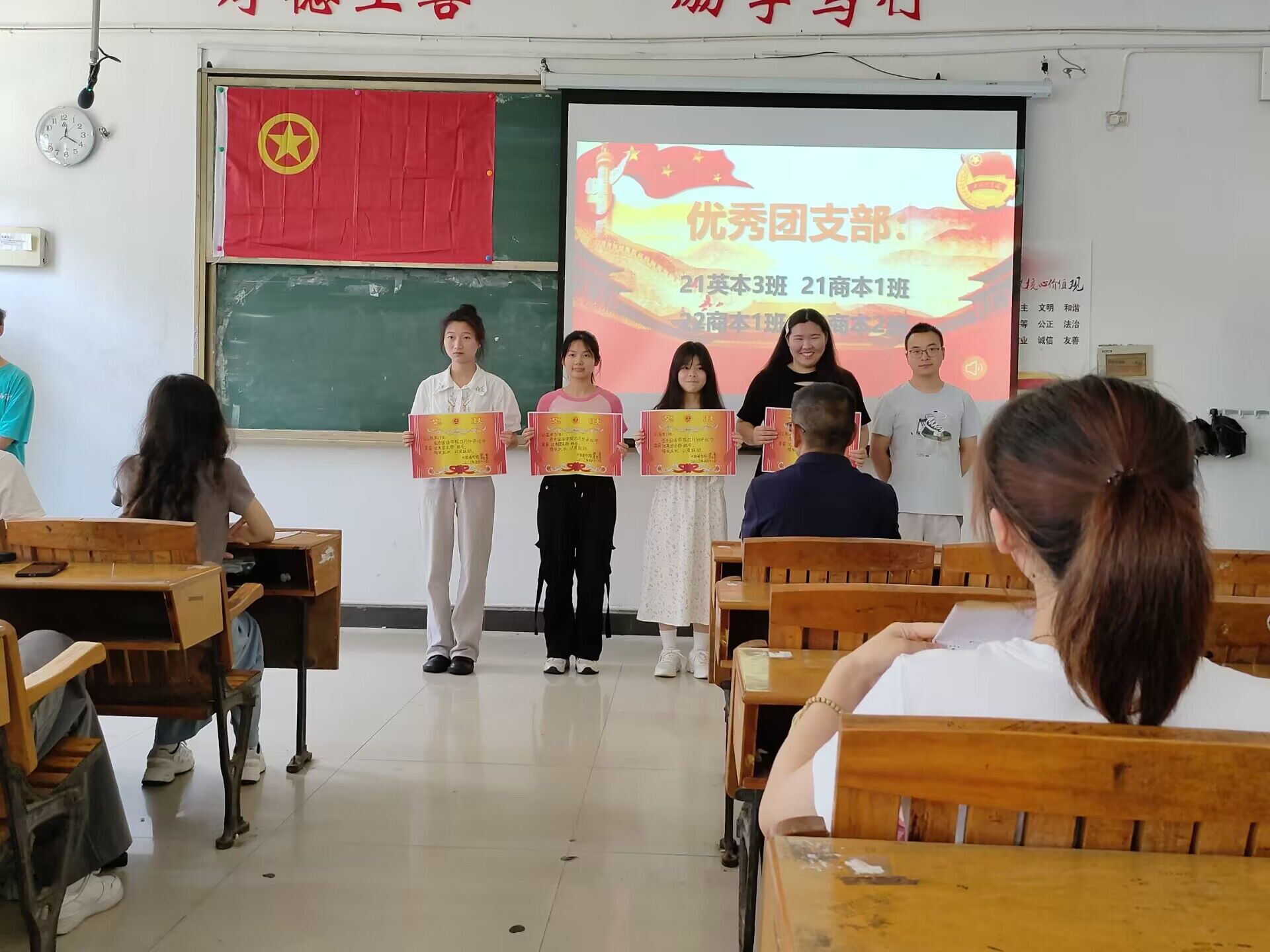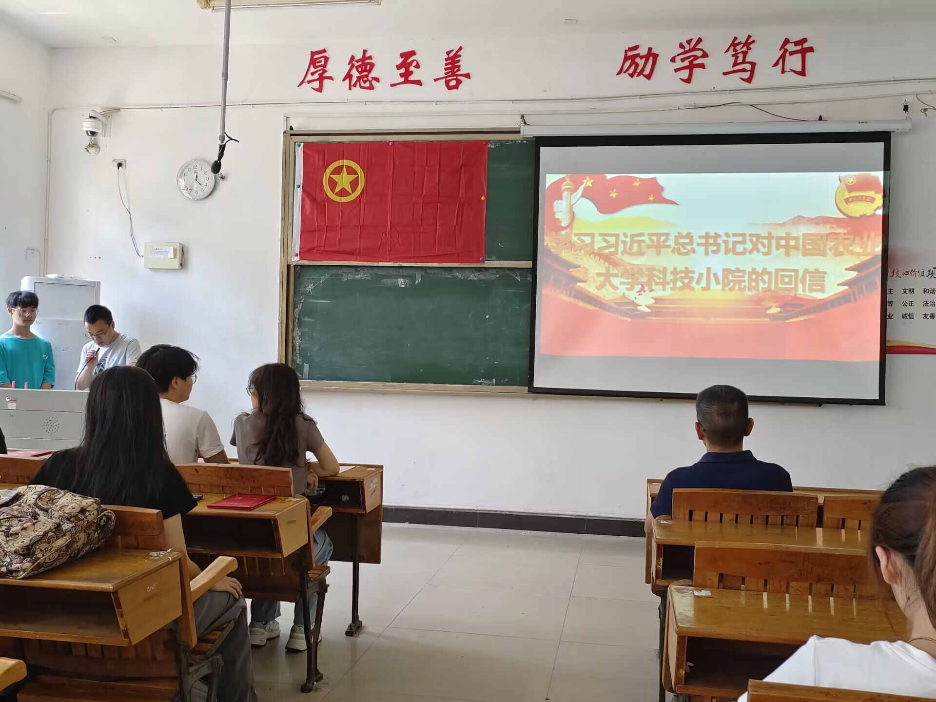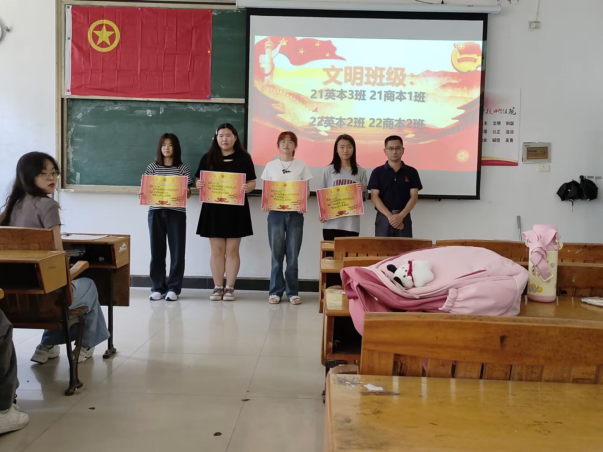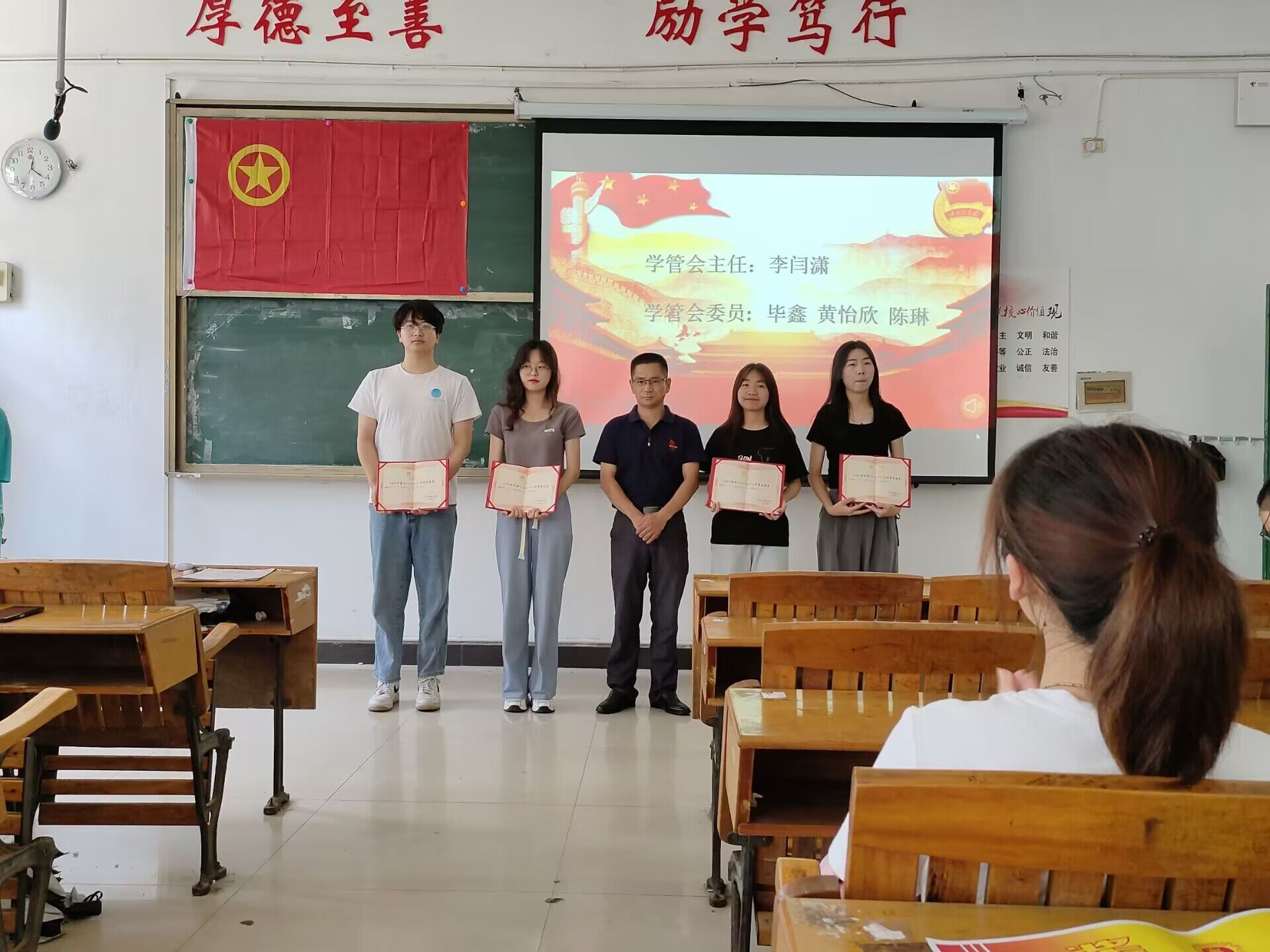 大会初始,由工作人员进行考勤,确保学干们准时到达会场。紧接着,进入颁奖环节,主持人宣布文明班级、优秀团支部、学管会换届获奖情况,并分别由刘书记、冷全宝老师为他们颁发奖状并合影留念。接着,由冷全宝老师带领大家学习习近平总书记对中国农业大学科技小院的回信。在致辞中,他强调我们要努力学习本领,增强自身能力,为中国的建设奉献一份力。随后,由刘书记上台致辞。首先他肯定了学干们在上个月的工作。同时也强调员工干部无论是在学习中或生活中,都应该有所作为、敢于担当、充分发挥先锋带头作用。他还强调大家要谨防电信诈骗,要时刻注意自己的心理问题,及时找老师、同学沟通,争取一起把外院的工作做到最好。同学们也表示将谨记书记教诲,在日常生活中树立良好的学习榜样。最后,在大家的一阵阵热烈掌声中,大会到此圆满结束。