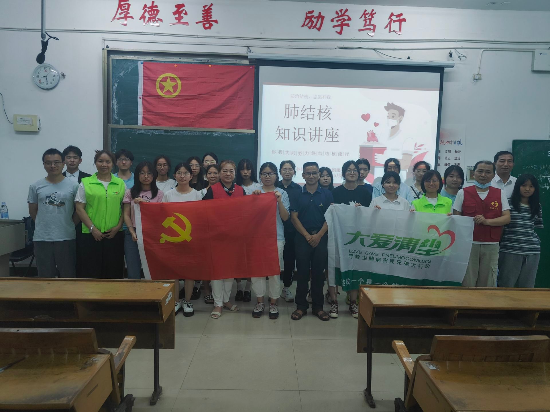 为了提升员工的健康素养,响应“健康中国”战略,beats365亚洲版官网“昱辉”志愿服务团于2023年5月30日晚上在英华楼3306教室举办了肺结核知识讲座。参加本次讲座的有“大爱清尘”公益基金会的志愿者、公司党委书记刘佳萍、团委书记冷全宝、教学秘书王卫民、“昱辉”志愿服务团团长和大一全体员工。