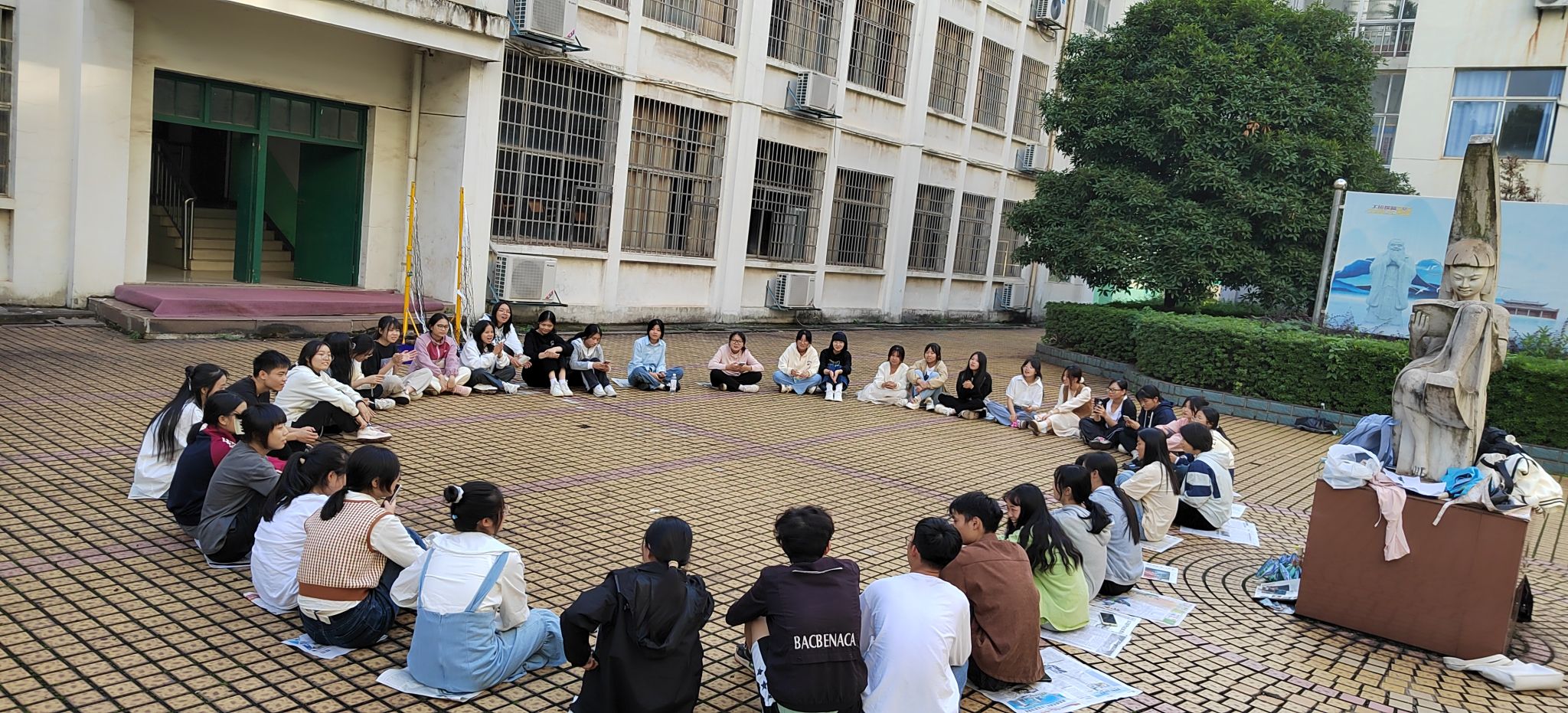 团体培训活动分为上午和下午两场,在阳光明媚的上午,我们在3104教室进行了室内活动培训;在热情似火的下午,我们在英华楼院子里进行了户外游戏培训。