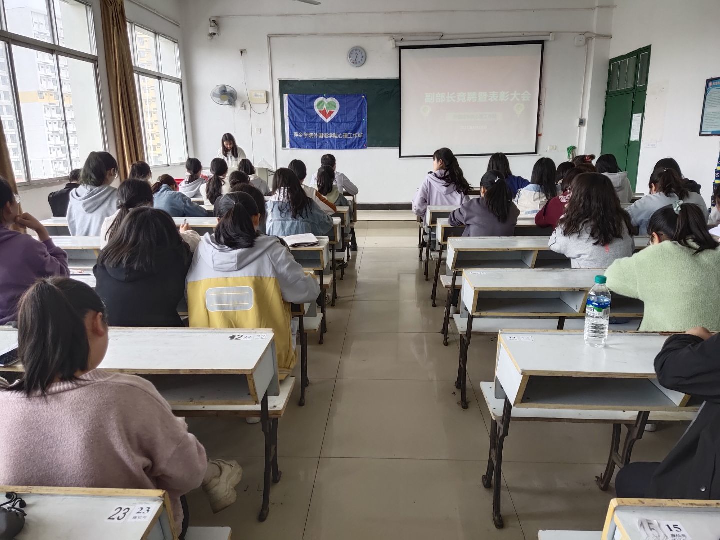 会议由心理站办公室孙宇主持。会议开始,心理站站长锜新娇对寒假和开学以来的心理站工作进行了总结:外院心理站在寒假期间响应上级号召,举办了“健康家庭公约”比赛活动;心理委员积极关注班上同学的心理状态,各班都提交了三次假期心理状态“风云表”;开学以后除做好日常工作外,还开展了户外活动和心理知识讲座。她还对本学期的工作进行了部署,做到日常工作不放松,月月都有中心工作,每个学期都有一个重磅活动。而后,大一的熊婕等4位同学参加了副部长竞聘,现场宣读了竞聘稿,她们表示在心理站有收获、有成长,愿意在这里锻炼自己、服务同学。外院心理站在寒假举办的“健康家庭公约”比赛一共有59位同学的家庭参加。最终的评分来自老师的评分和网络投票,两方面的分数各占一半,共评选出一、二、三等奖12名、优秀奖12名、鼓励奖35名。最后,刘书记上台发言,对心理站的工作进行了肯定和鼓励,并勉励同学们把自我成长和服务同学结合起来,再接再厉,为增进beats365亚洲版官网学子的身心健康做出更大的贡献。